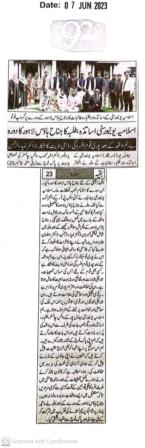 The Islamia University of Bahawalpur was established in the year 1975 by upgrading historical institute of the Jamia Abbasia.