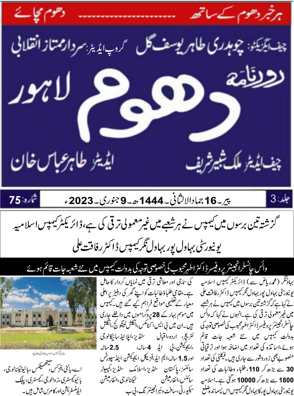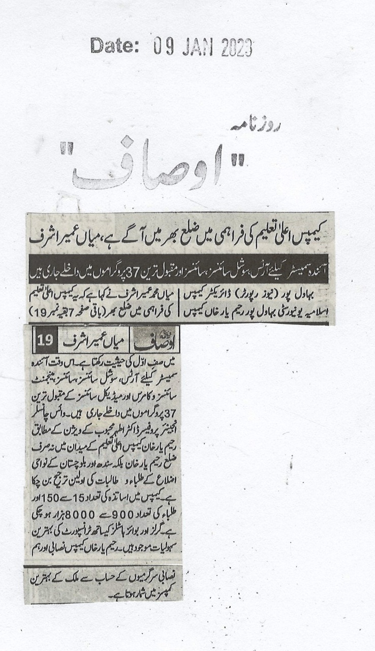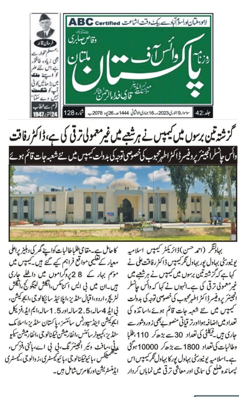 The Islamia University of Bahawalpur was established in the year 1975 by upgrading historical institute of the Jamia Abbasia.