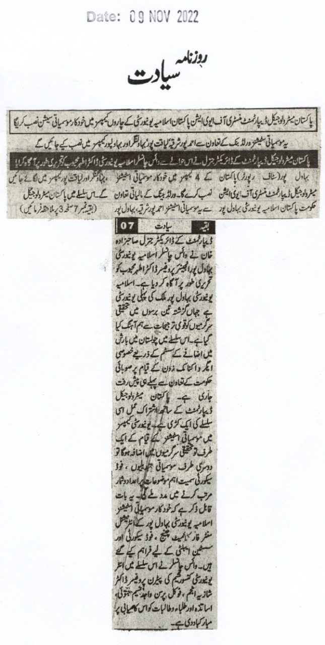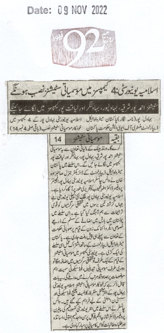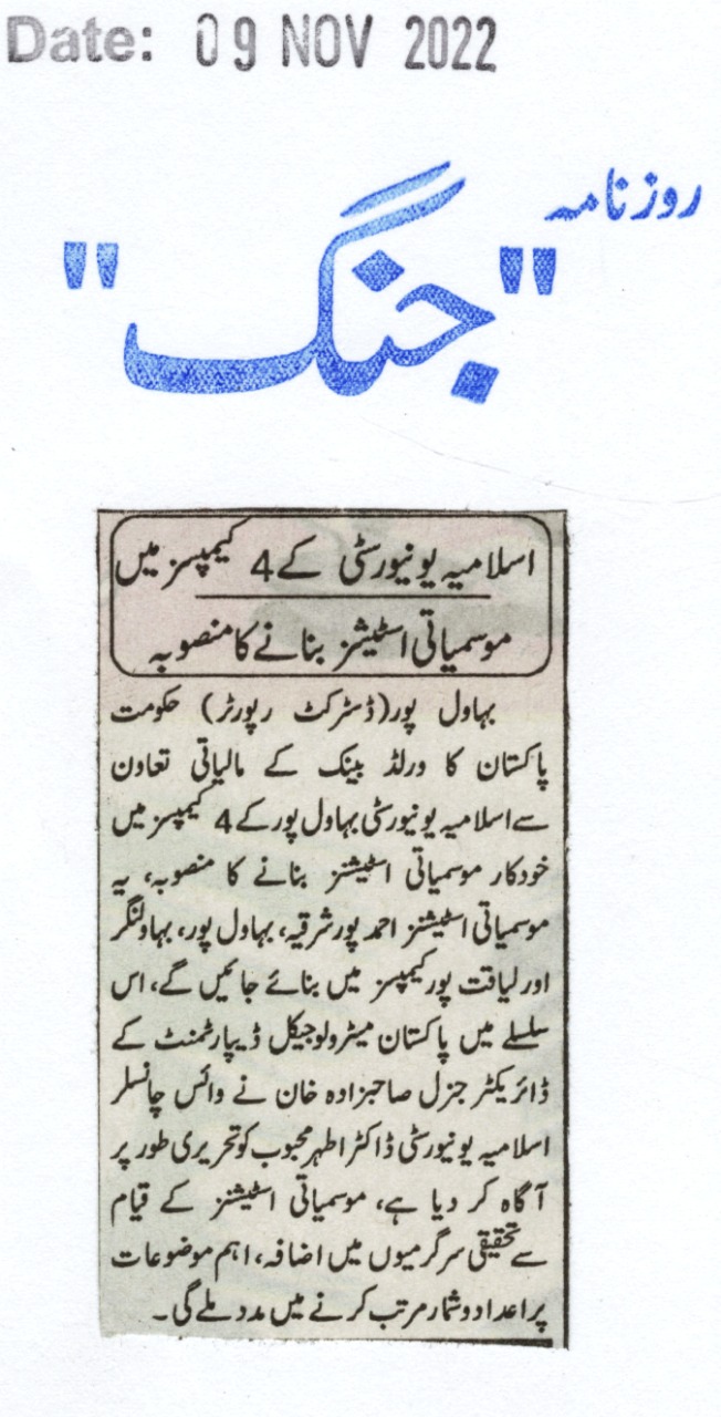 The Islamia University of Bahawalpur was established in the year 1975 by upgrading historical institute of the Jamia Abbasia.