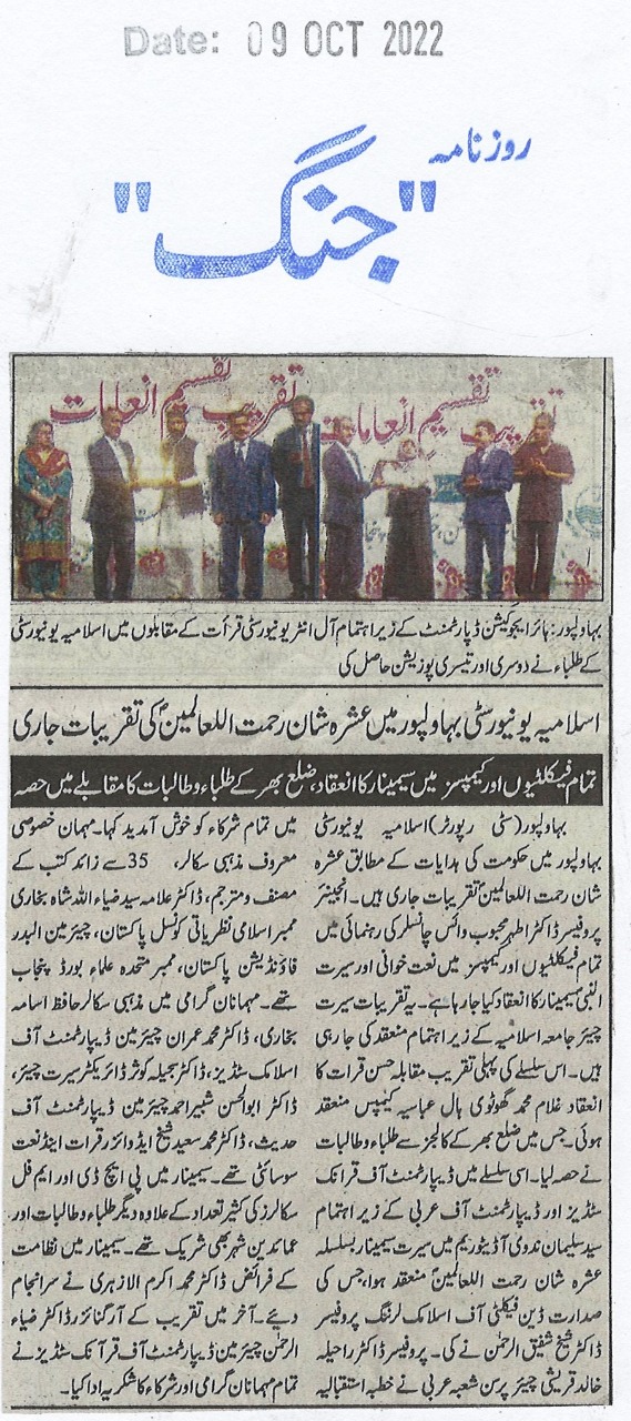 The Islamia University of Bahawalpur was established in the year 1975 by upgrading historical institute of the Jamia Abbasia.