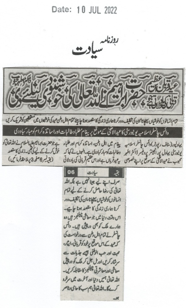 The Islamia University of Bahawalpur was established in the year 1975 by upgrading historical institute of the Jamia Abbasia.