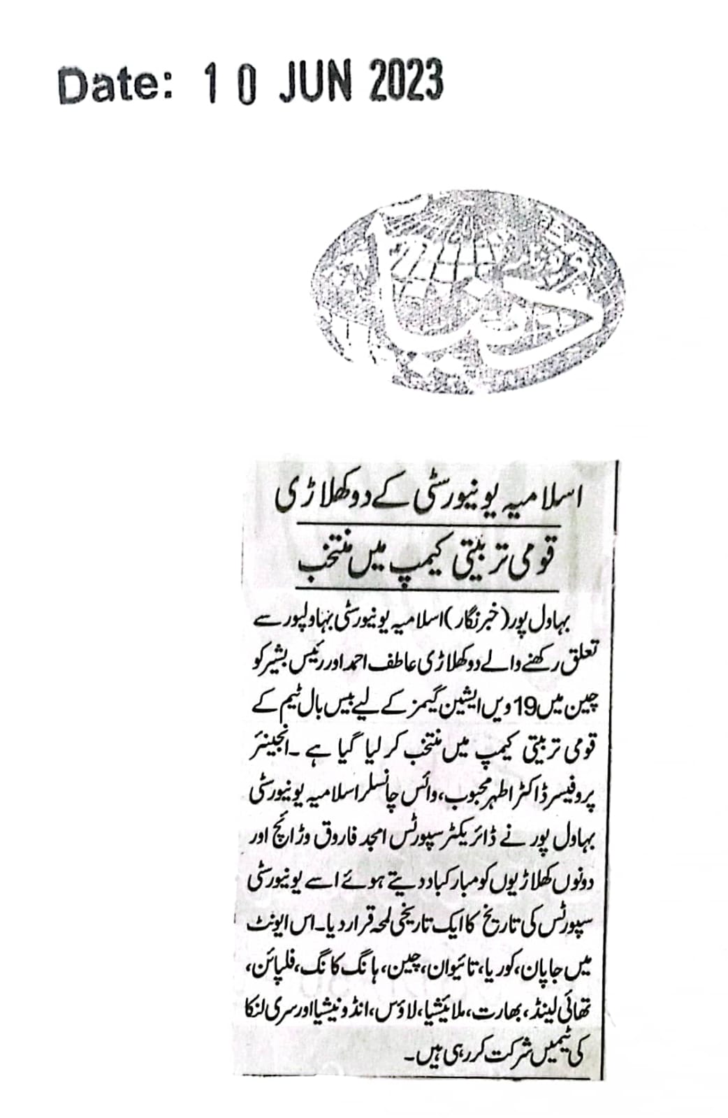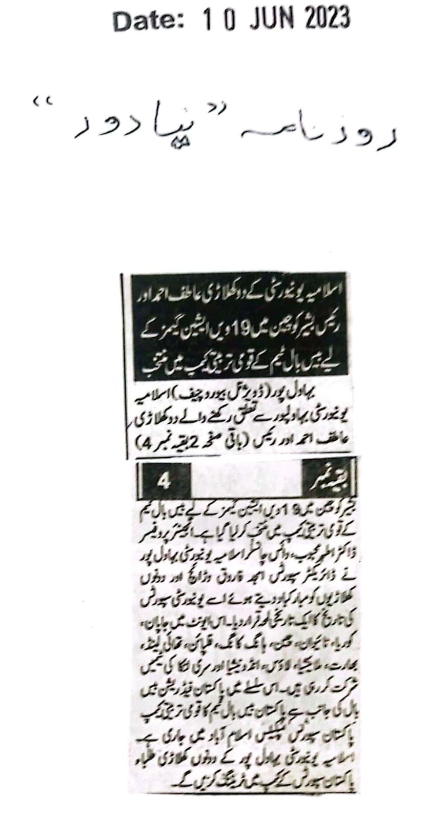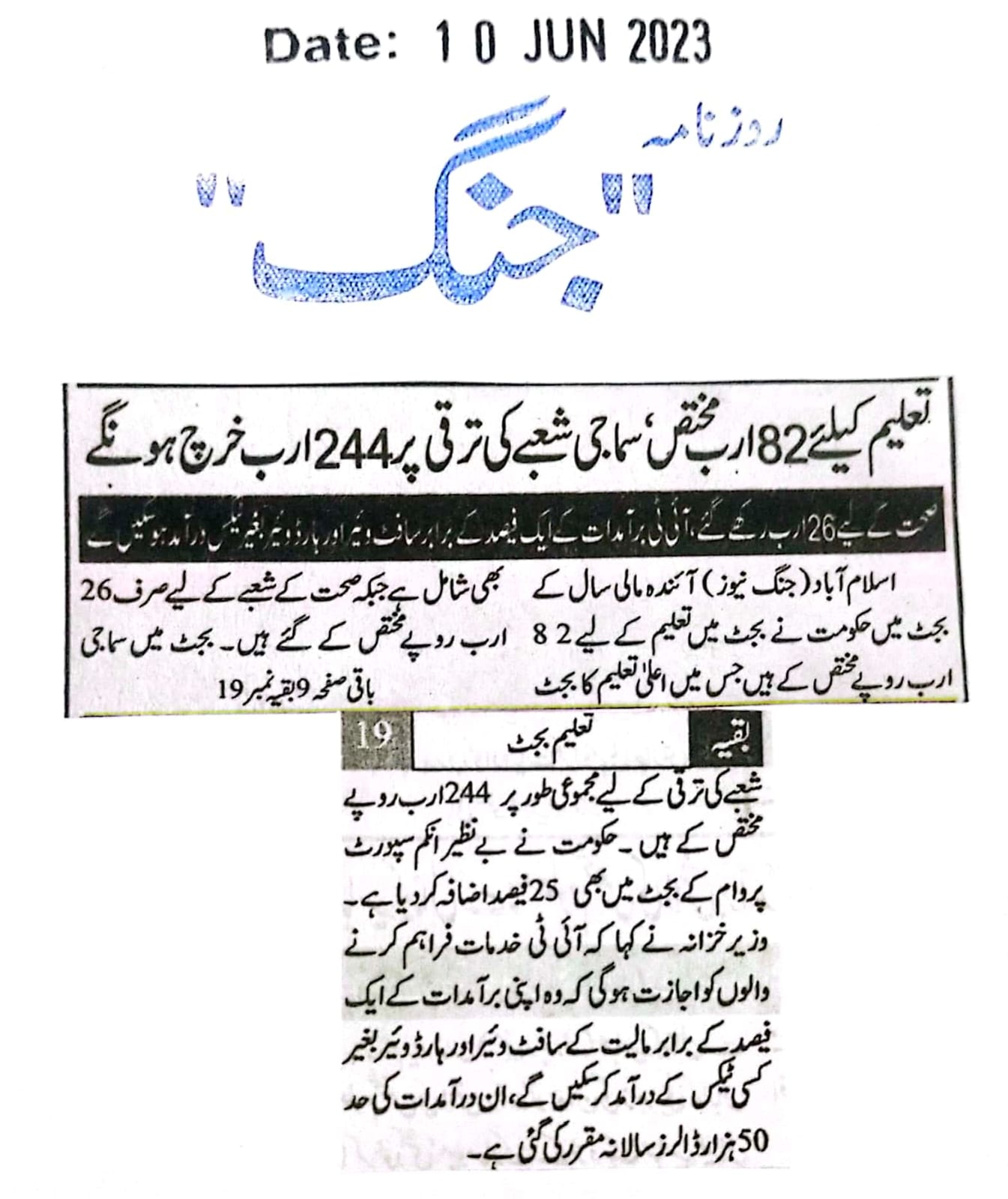 News Cutting 10 June 2023