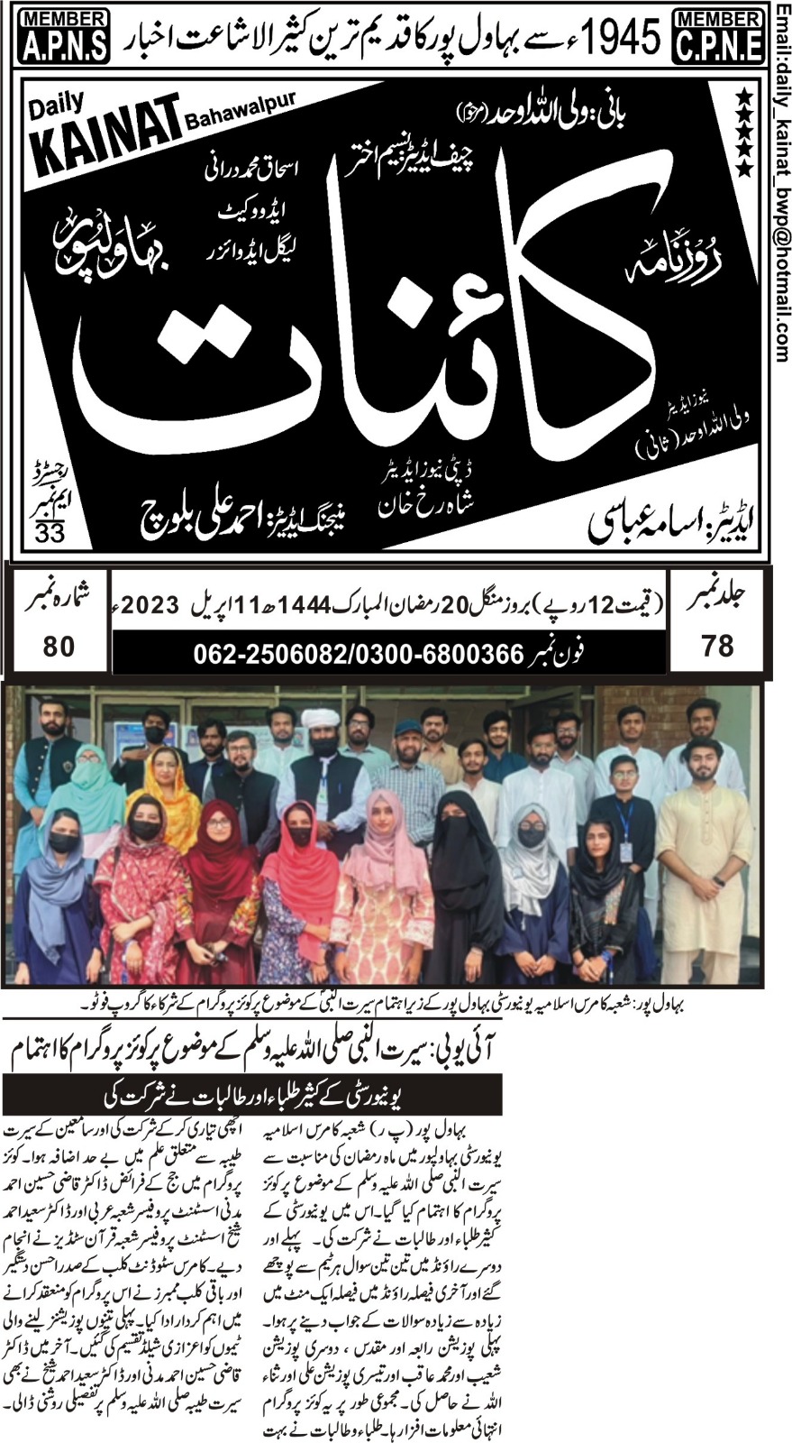 The Islamia University of Bahawalpur was established in the year 1975 by upgrading historical institute of the Jamia Abbasia.