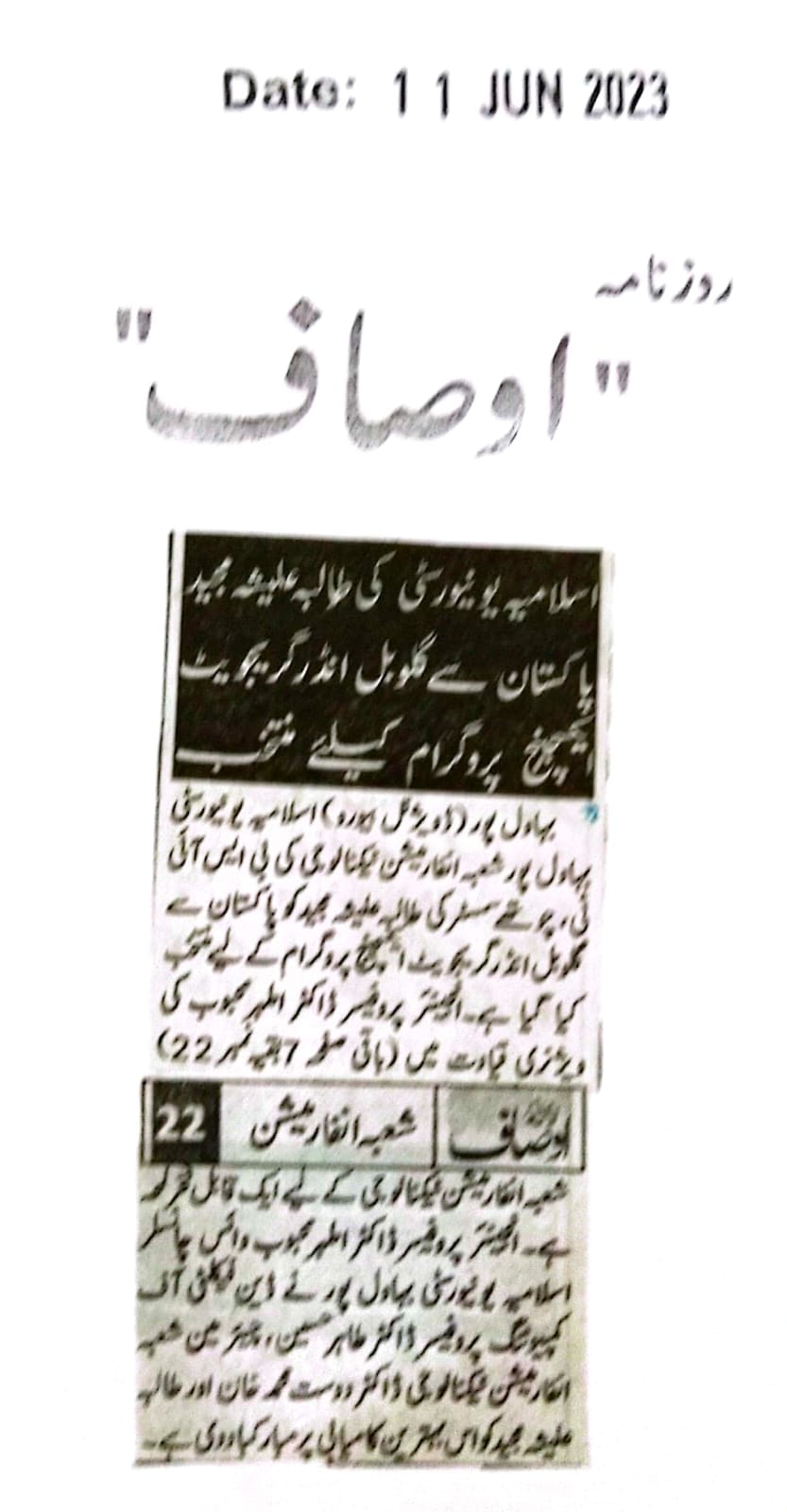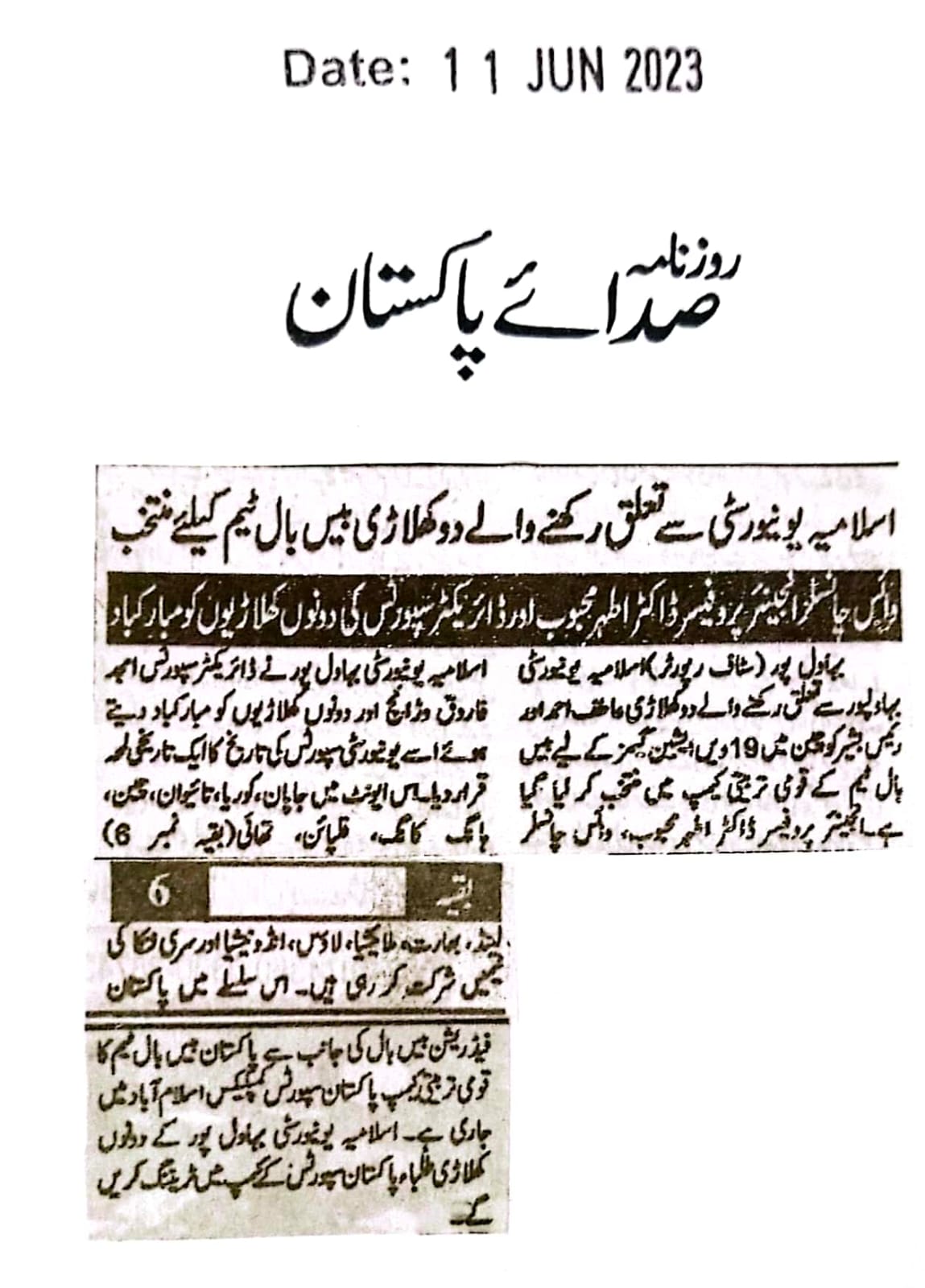 News Cutting 11 June 2023