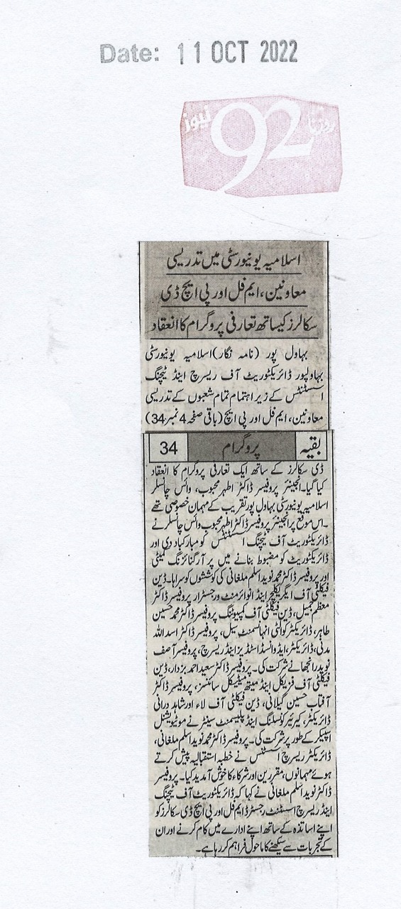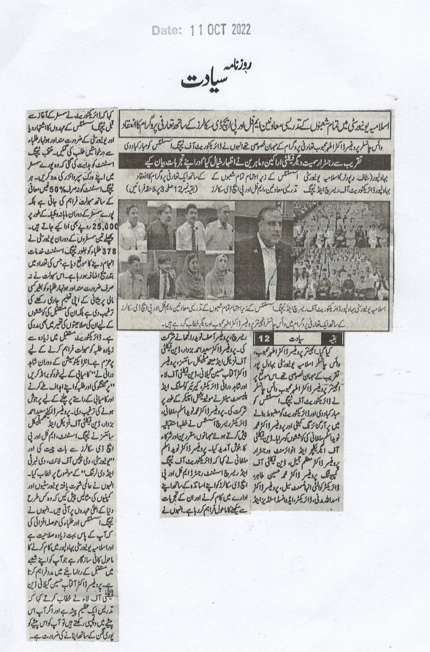 The Islamia University of Bahawalpur was established in the year 1975 by upgrading historical institute of the Jamia Abbasia.