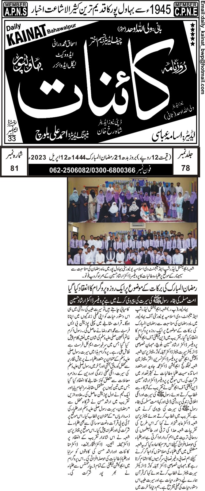 The Islamia University of Bahawalpur was established in the year 1975 by upgrading historical institute of the Jamia Abbasia.