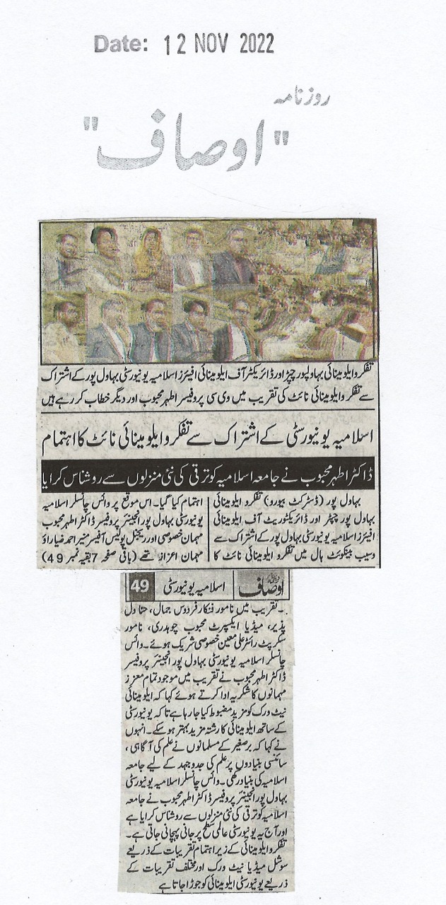The Islamia University of Bahawalpur was established in the year 1975 by upgrading historical institute of the Jamia Abbasia.