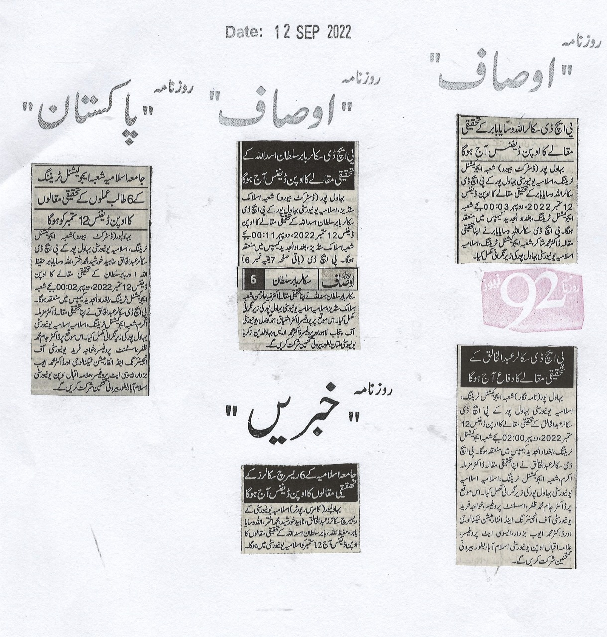 News Cutting 12 September 2022