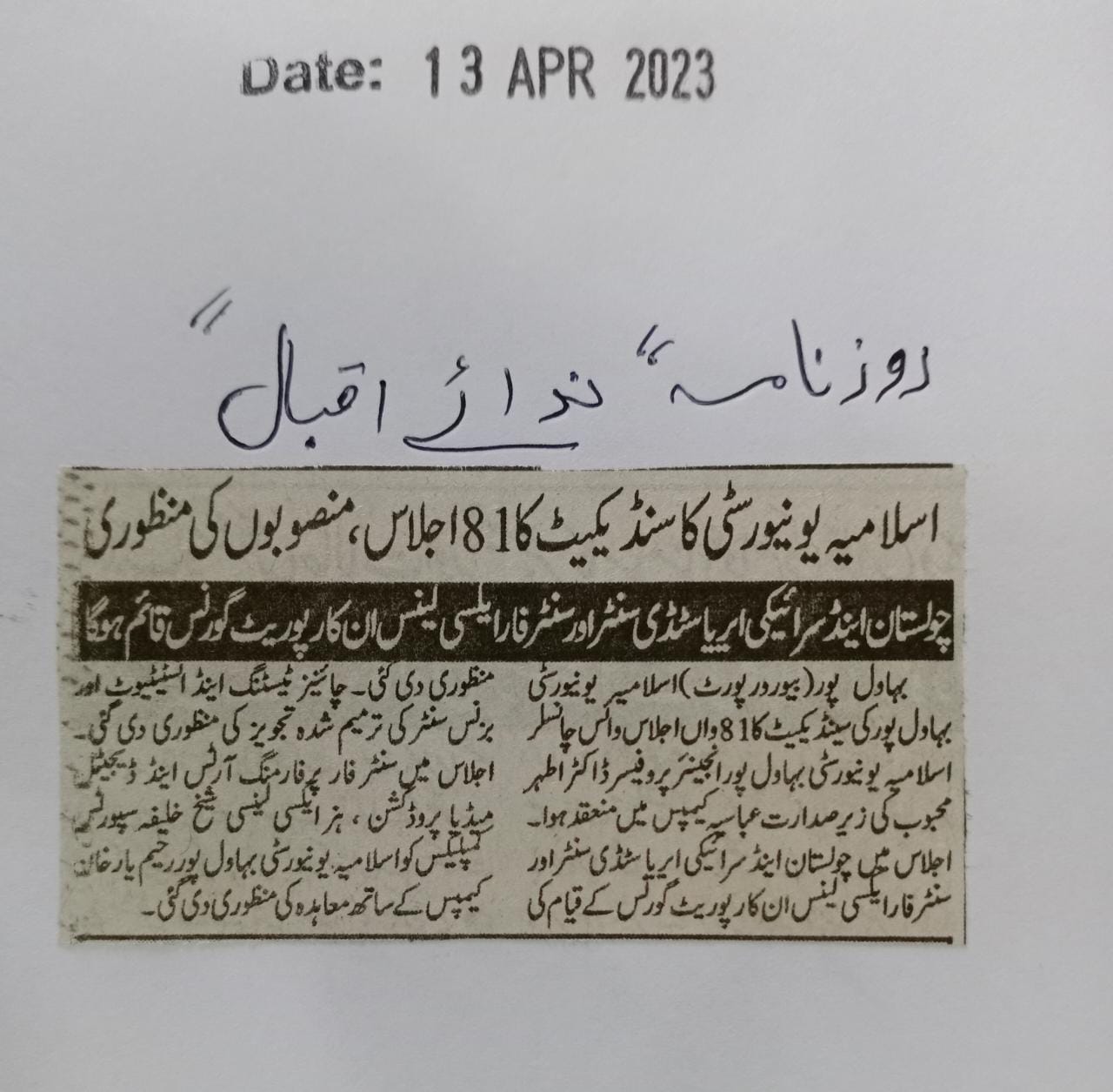 News Cutting 13 April 2023