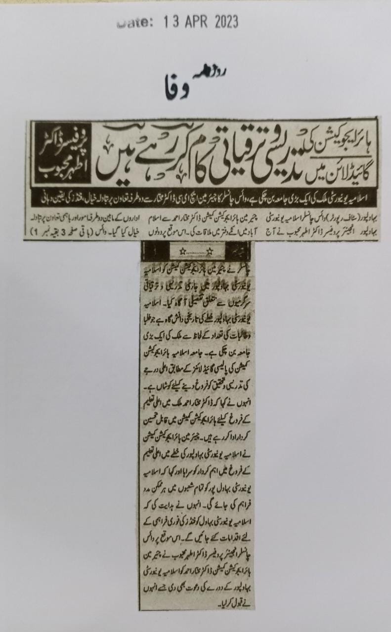 The Islamia University of Bahawalpur was established in the year 1975 by upgrading historical institute of the Jamia Abbasia.
