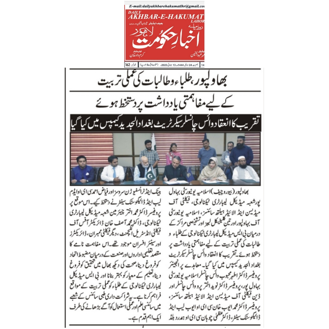 The Islamia University of Bahawalpur was established in the year 1975 by upgrading historical institute of the Jamia Abbasia.