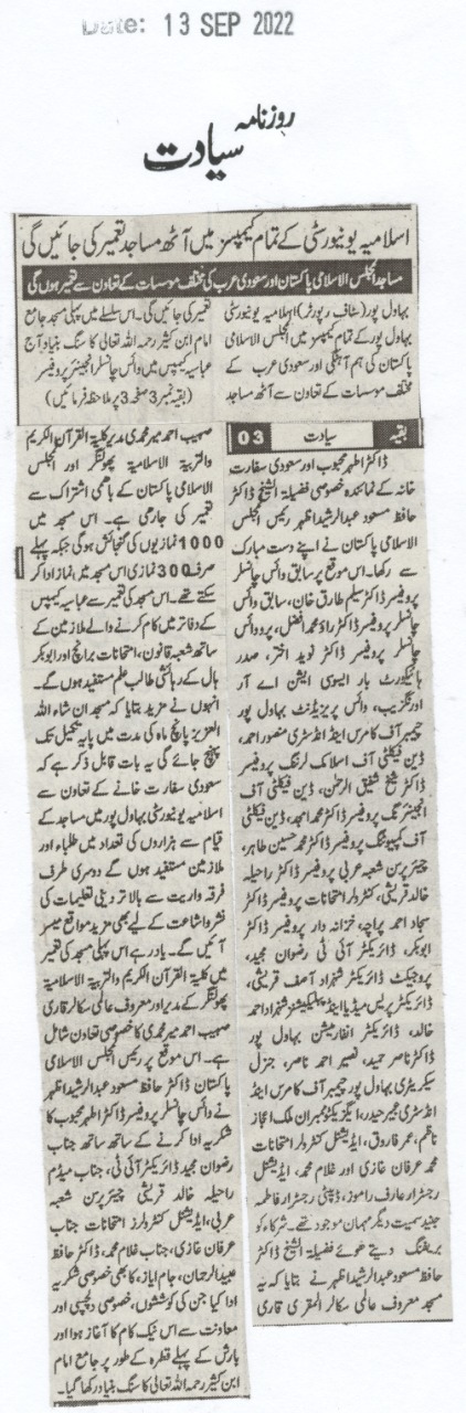 The Islamia University of Bahawalpur was established in the year 1975 by upgrading historical institute of the Jamia Abbasia.