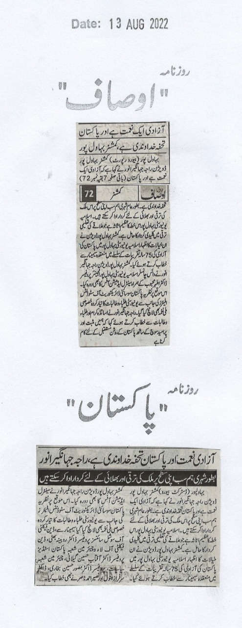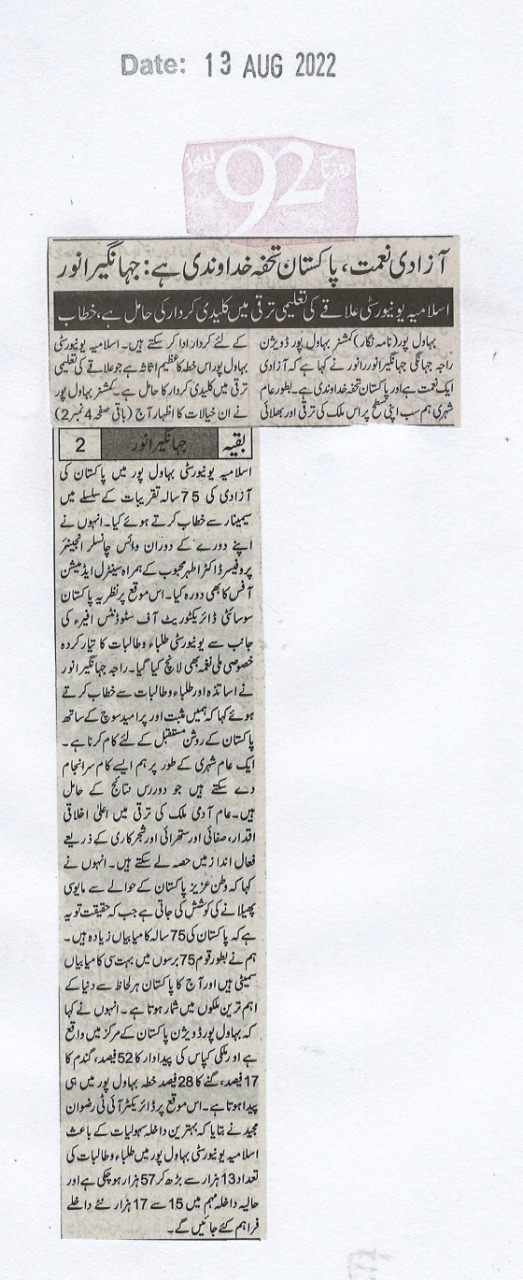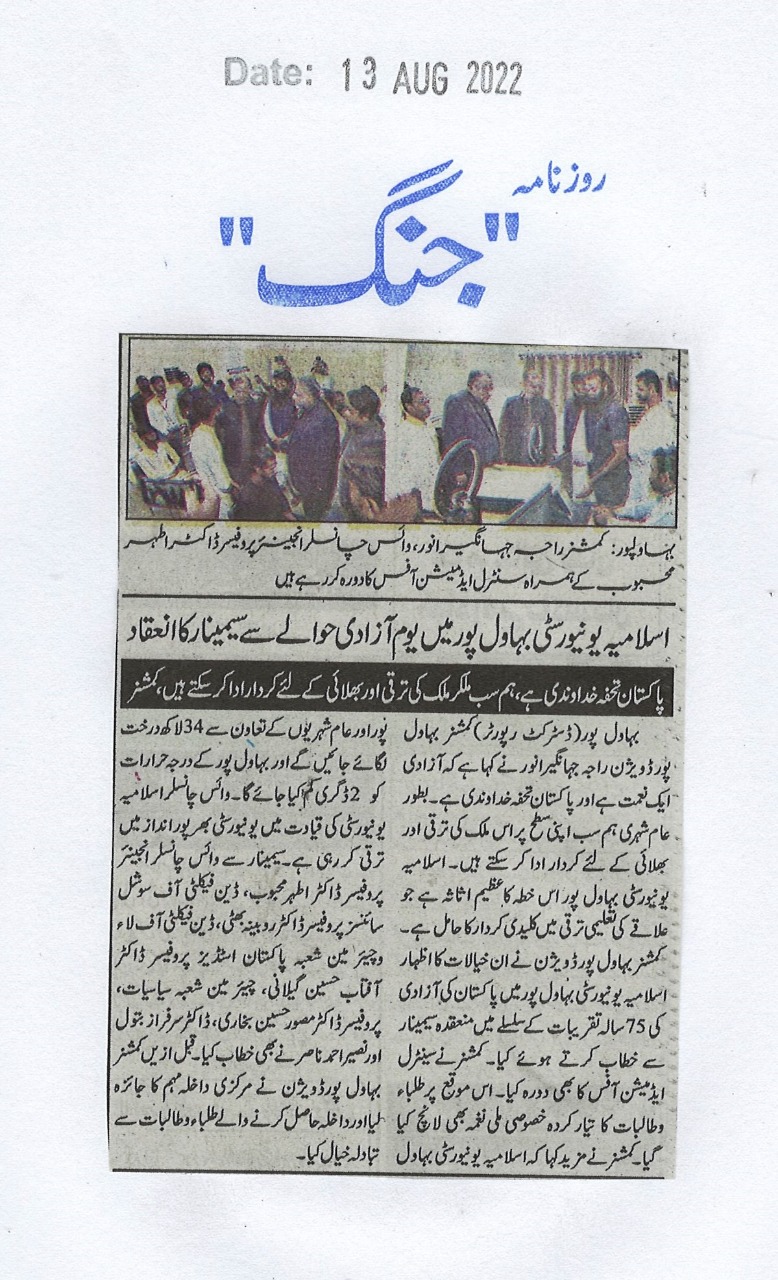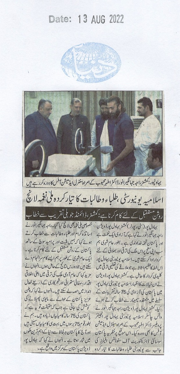 The Islamia University of Bahawalpur was established in the year 1975 by upgrading historical institute of the Jamia Abbasia.