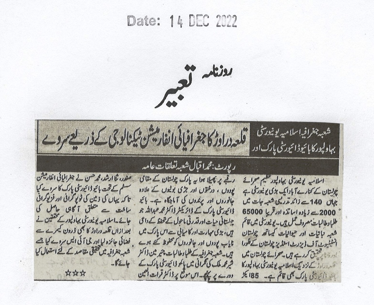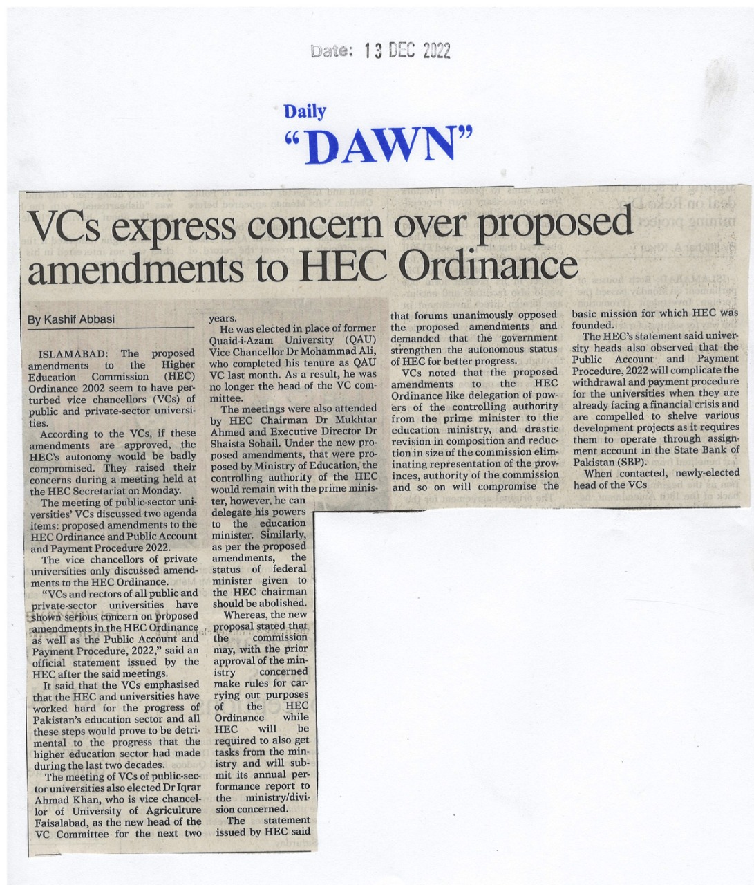 News Cutting 14 December 2022