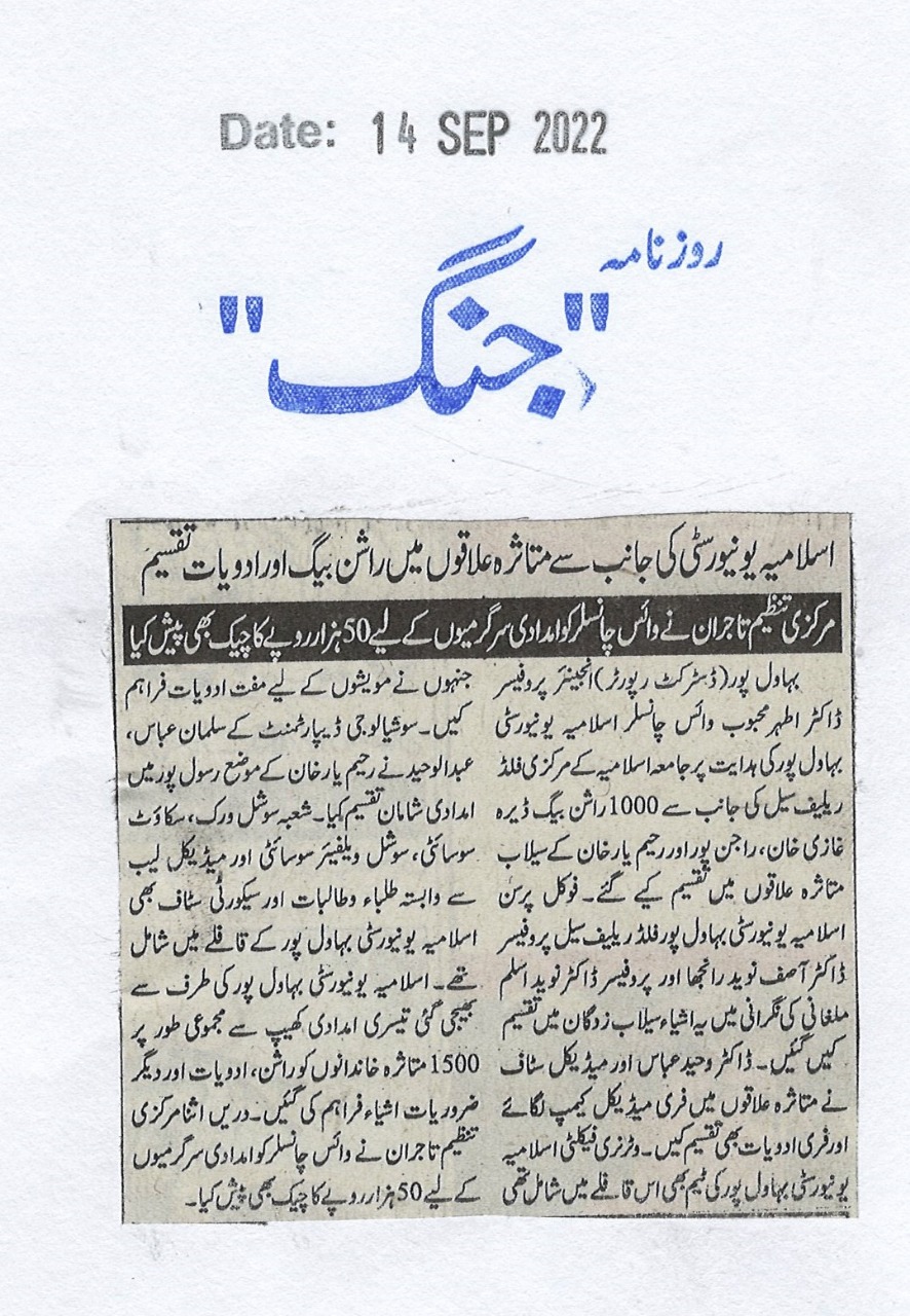 The Islamia University of Bahawalpur was established in the year 1975 by upgrading historical institute of the Jamia Abbasia.