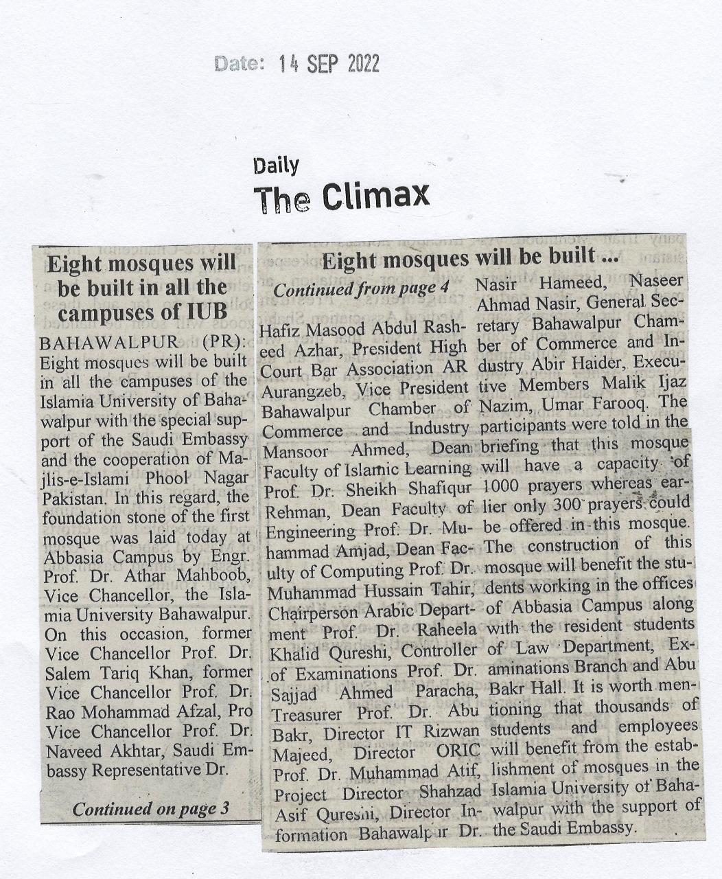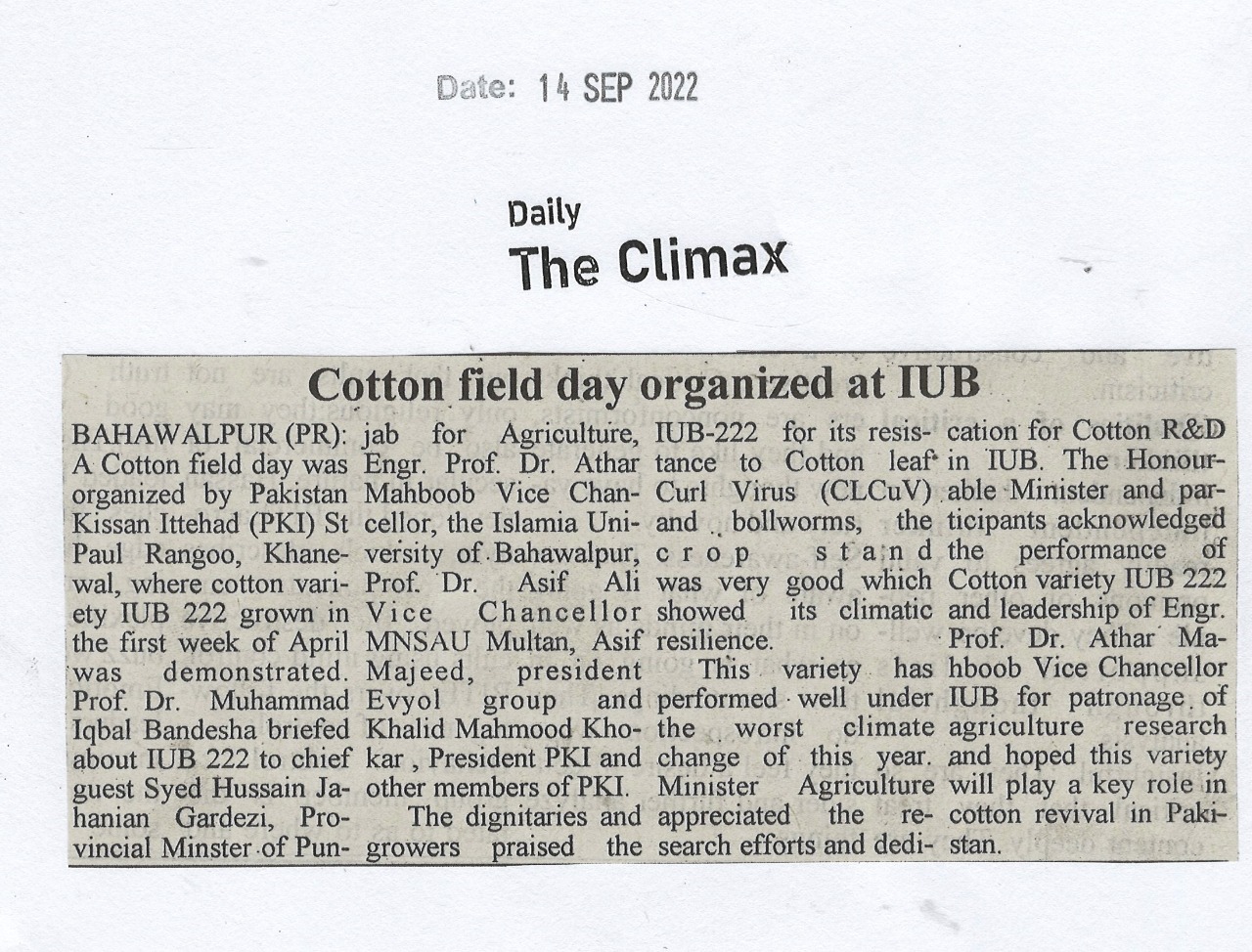 News Cutting 14 September 2022