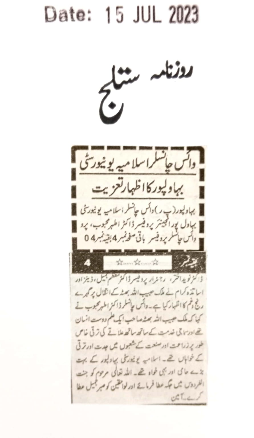 News Cutting 15 July 2023