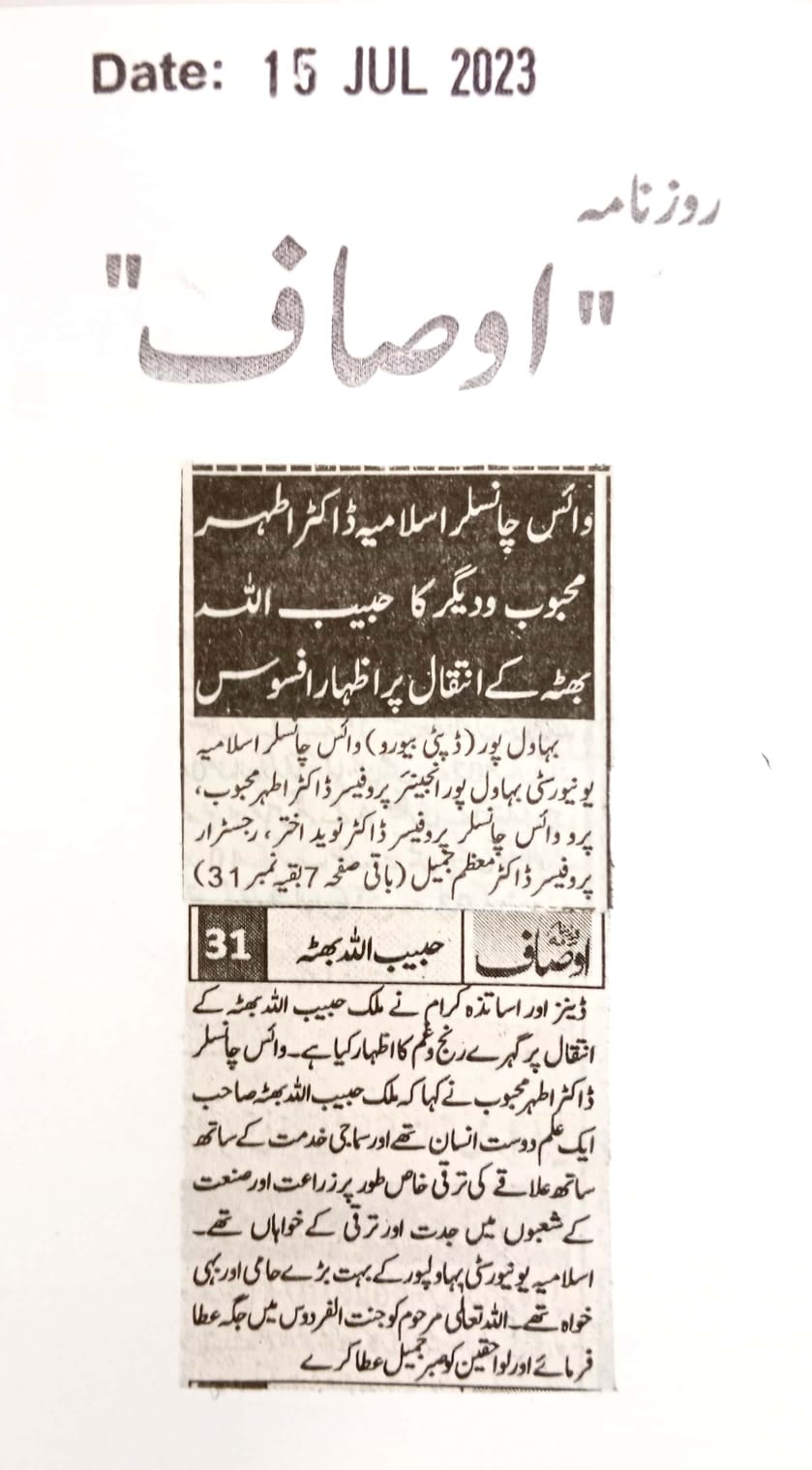 The Islamia University of Bahawalpur was established in the year 1975 by upgrading historical institute of the Jamia Abbasia.