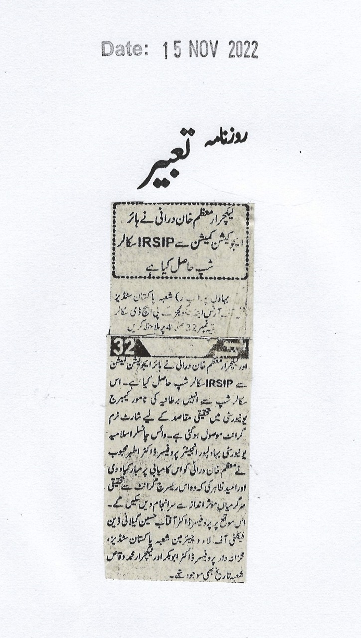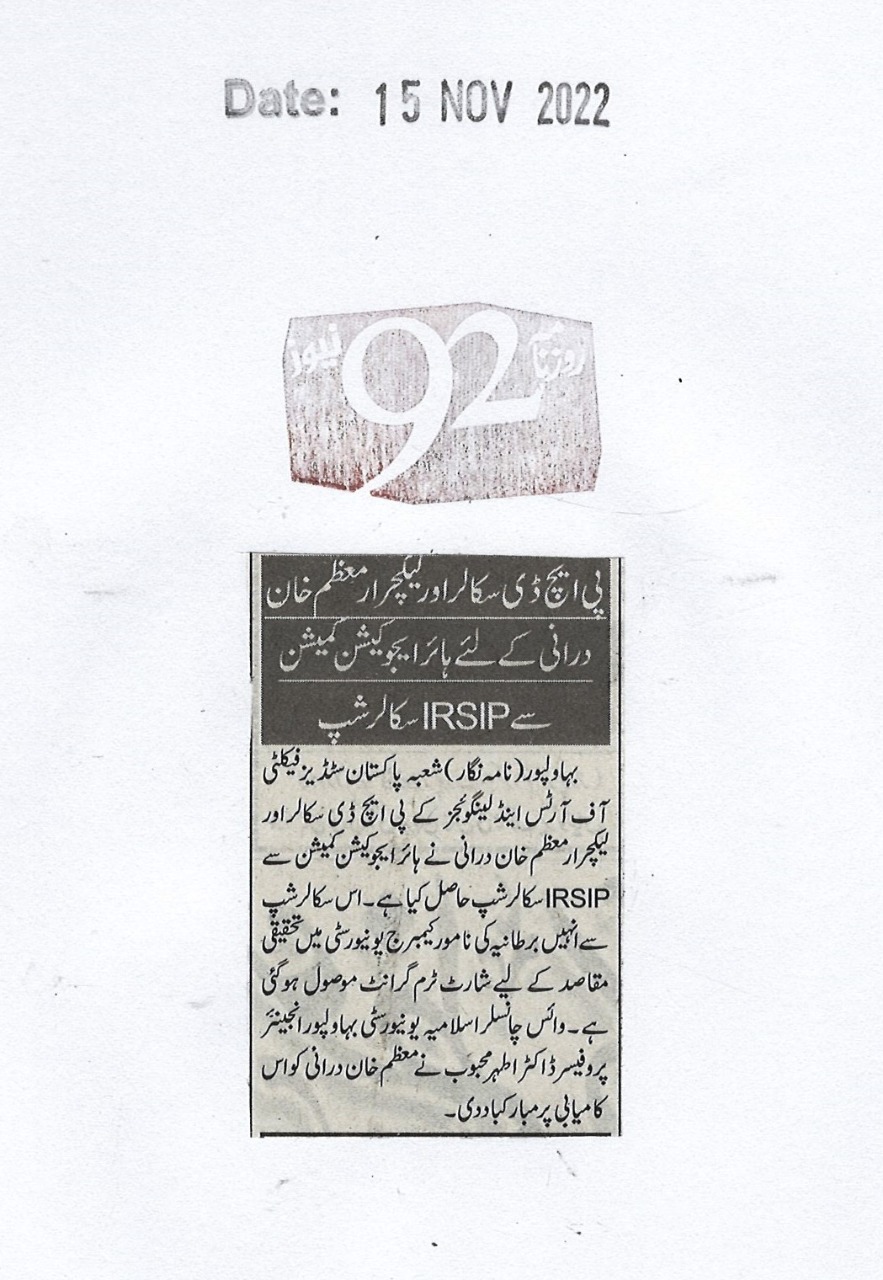 The Islamia University of Bahawalpur was established in the year 1975 by upgrading historical institute of the Jamia Abbasia.