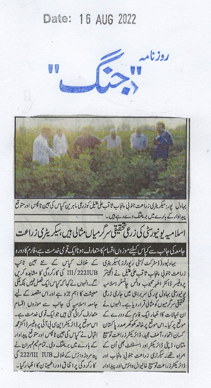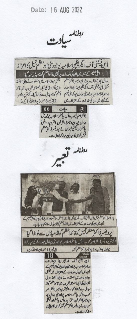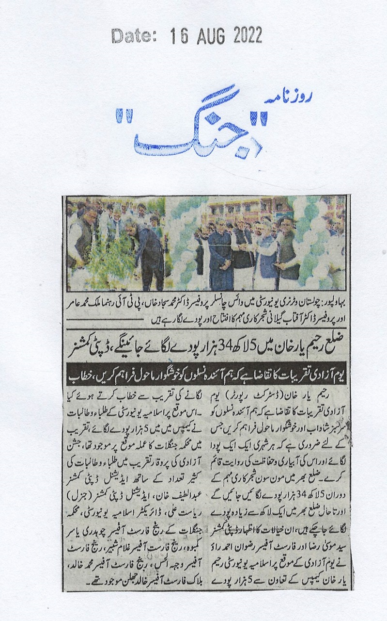 The Islamia University of Bahawalpur was established in the year 1975 by upgrading historical institute of the Jamia Abbasia.