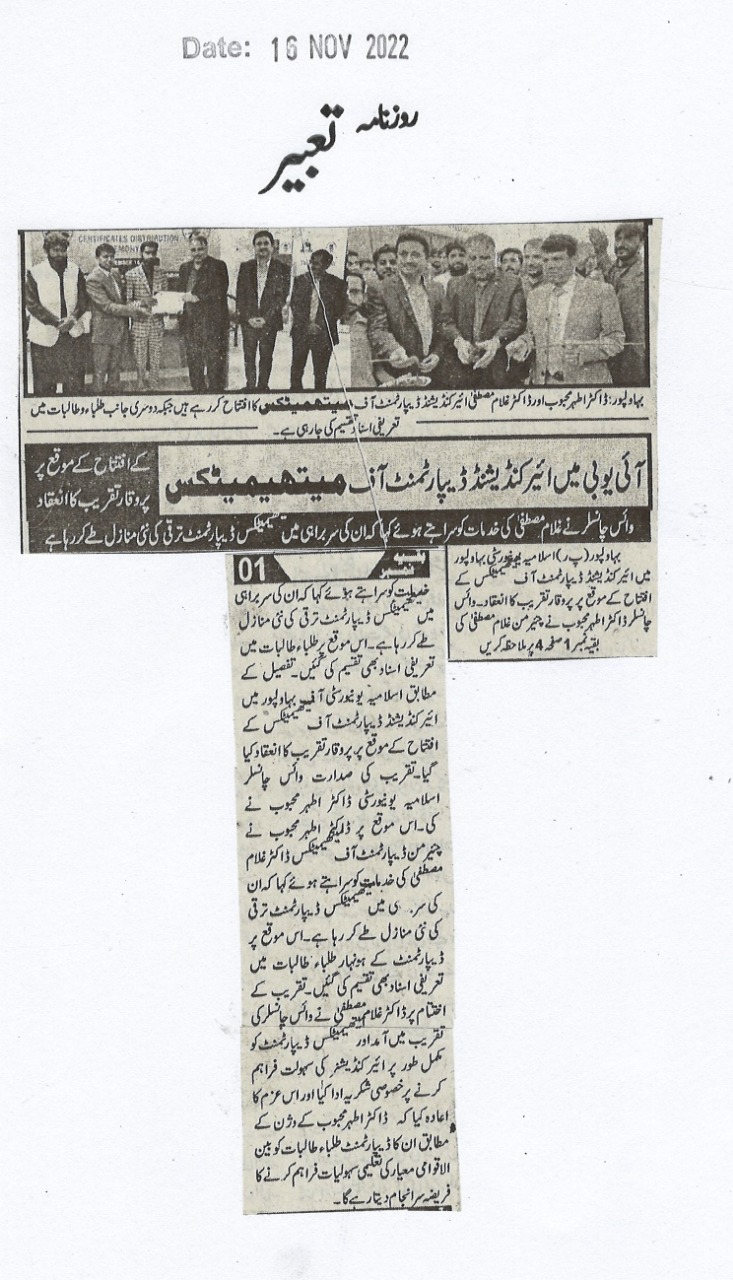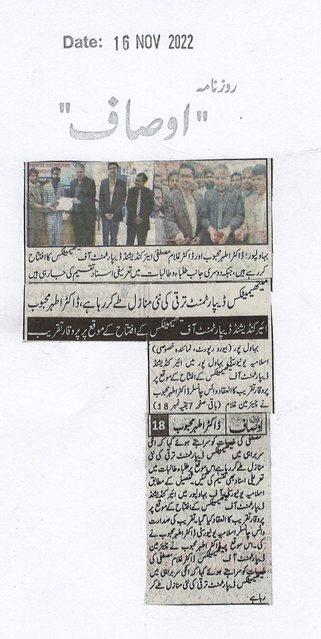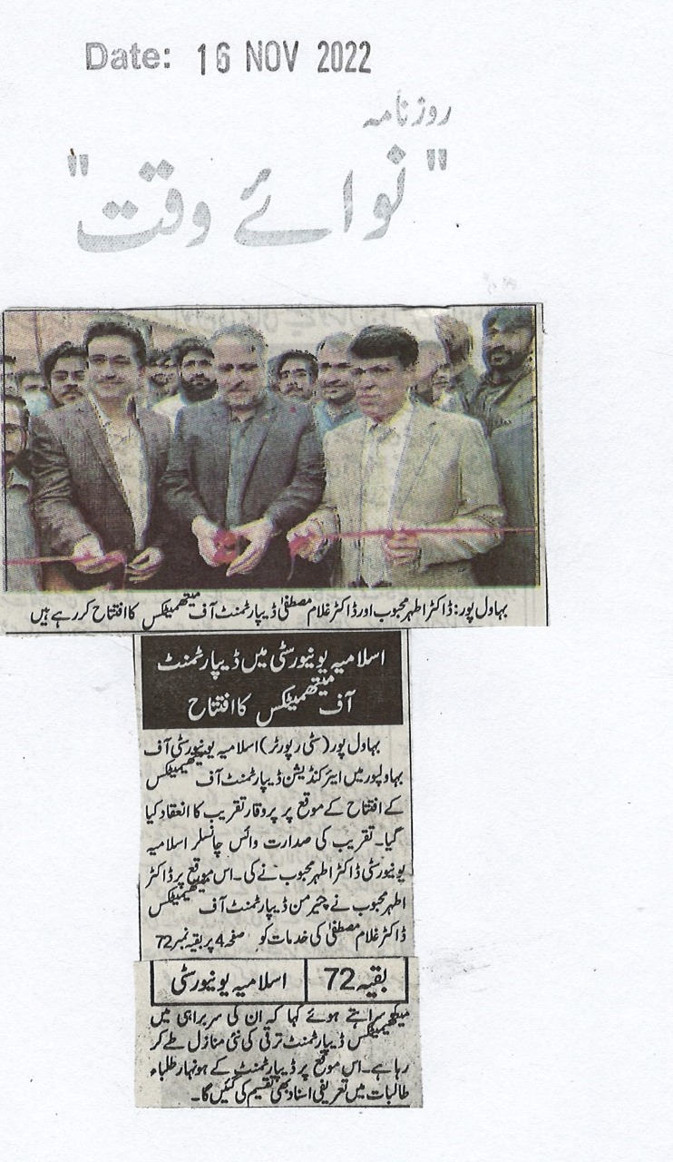 The Islamia University of Bahawalpur was established in the year 1975 by upgrading historical institute of the Jamia Abbasia.
