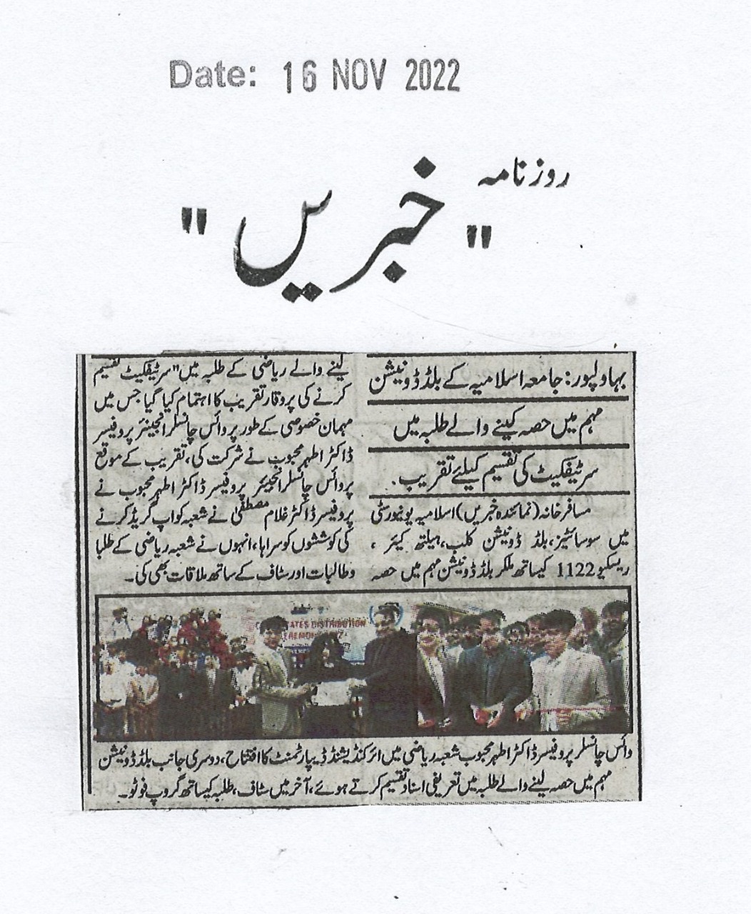 News Cutting 16 November 2022