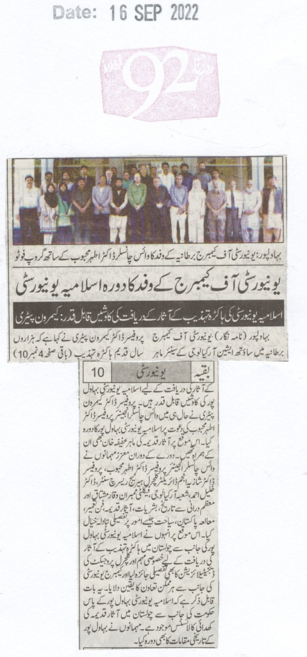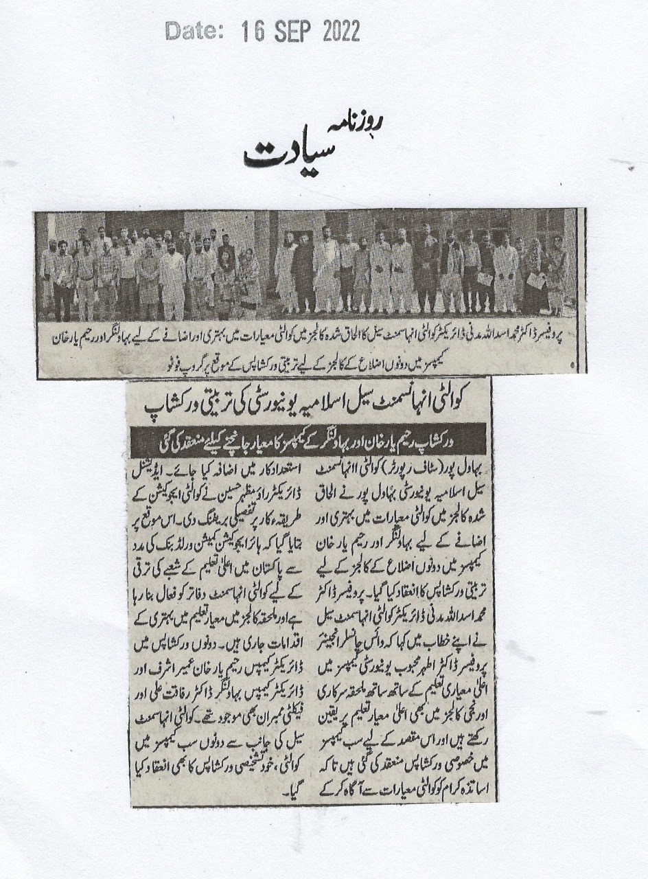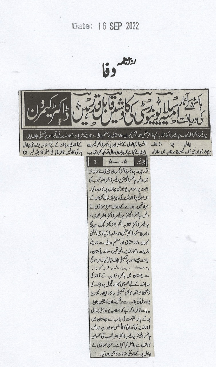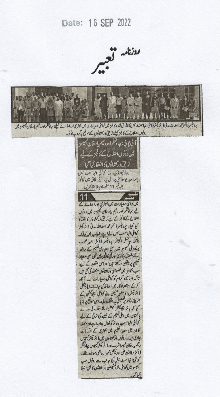 The Islamia University of Bahawalpur was established in the year 1975 by upgrading historical institute of the Jamia Abbasia.