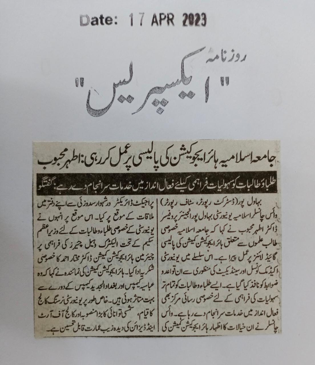 News Cutting 17 April 2023