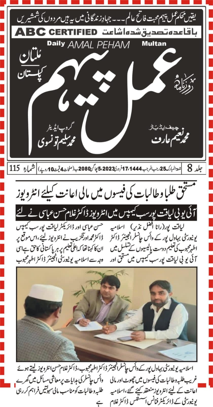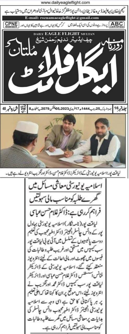 The Islamia University of Bahawalpur was established in the year 1975 by upgrading historical institute of the Jamia Abbasia.