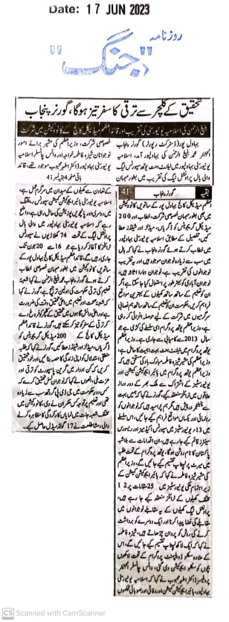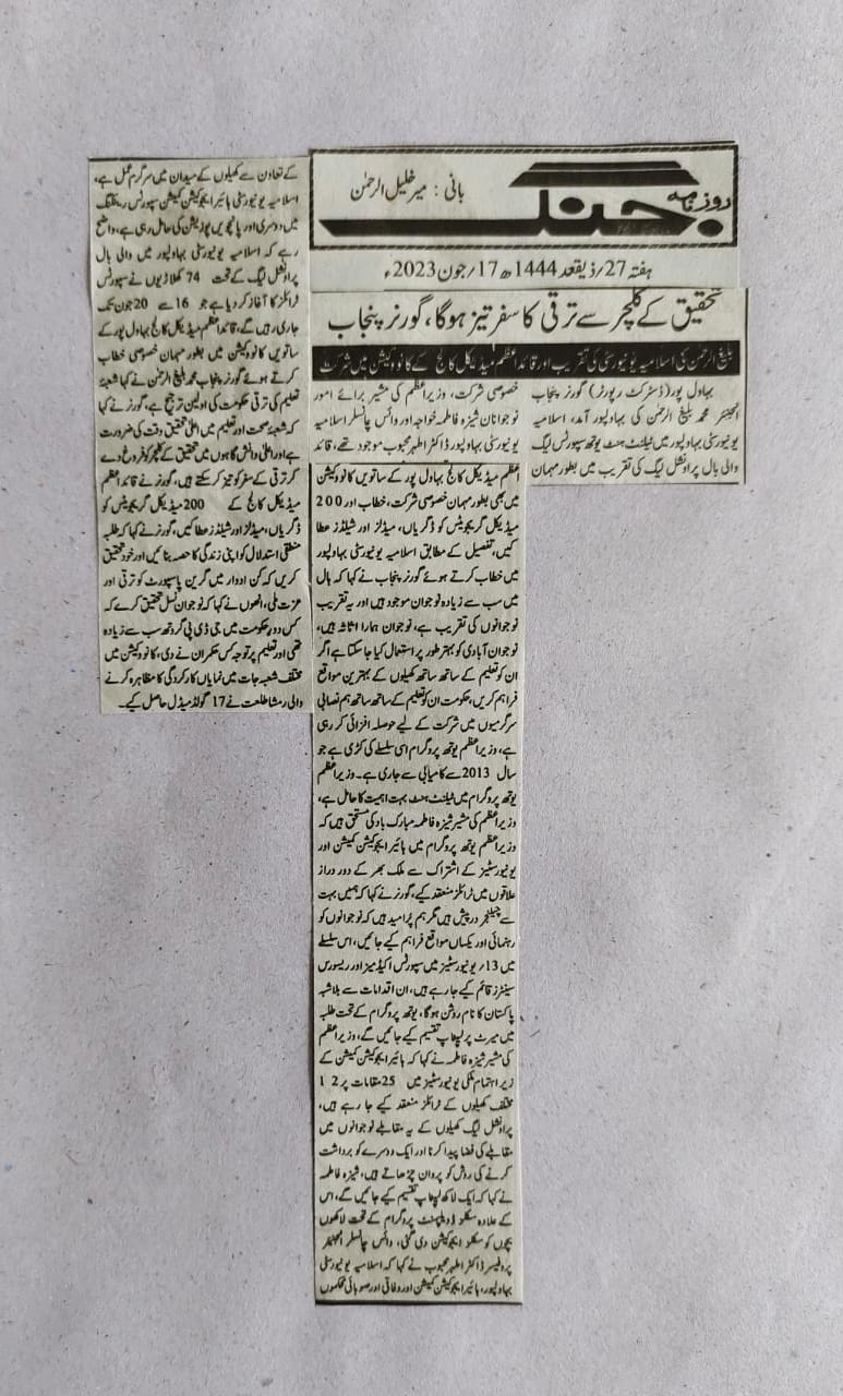The Islamia University of Bahawalpur was established in the year 1975 by upgrading historical institute of the Jamia Abbasia.