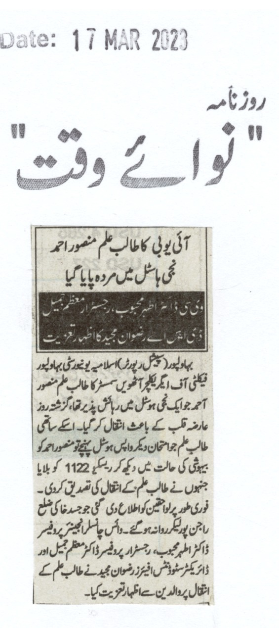 The Islamia University of Bahawalpur was established in the year 1975 by upgrading historical institute of the Jamia Abbasia.