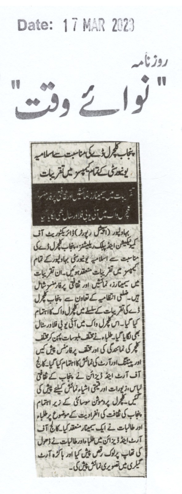 News Cutting 17 March 2023