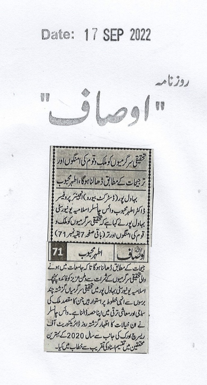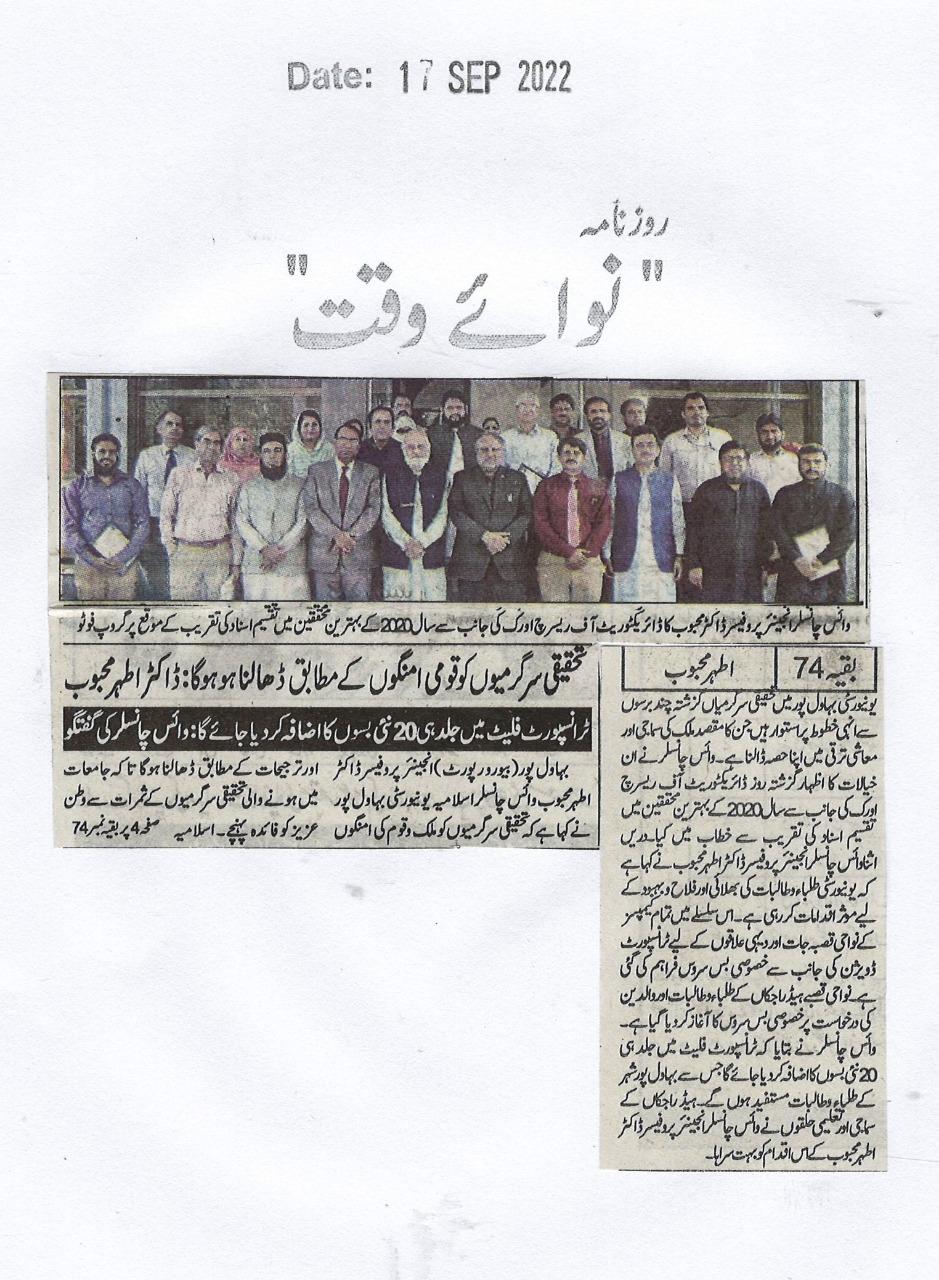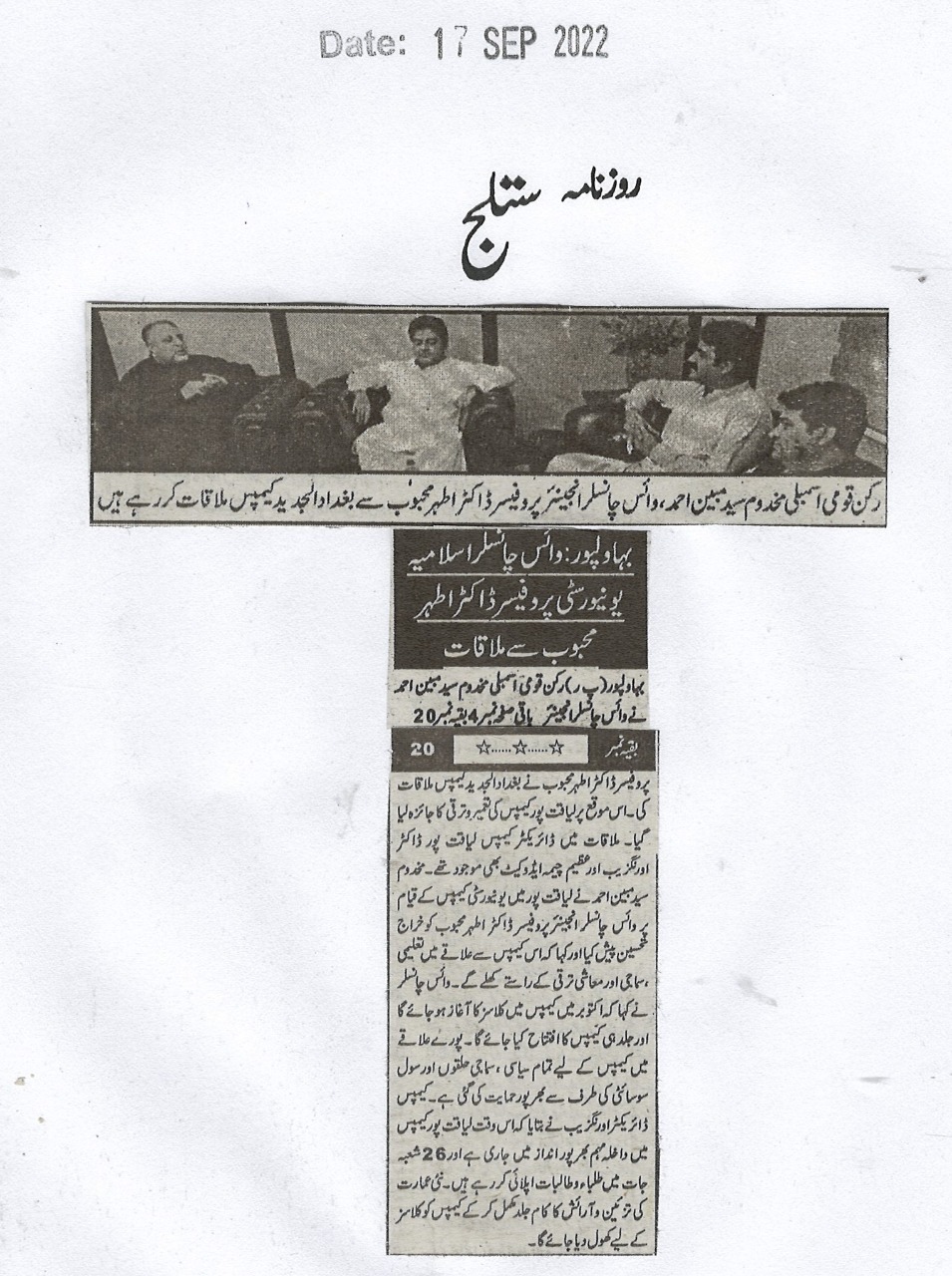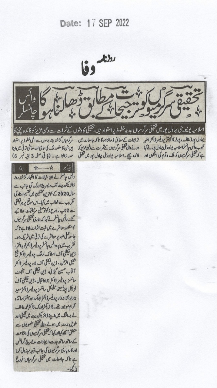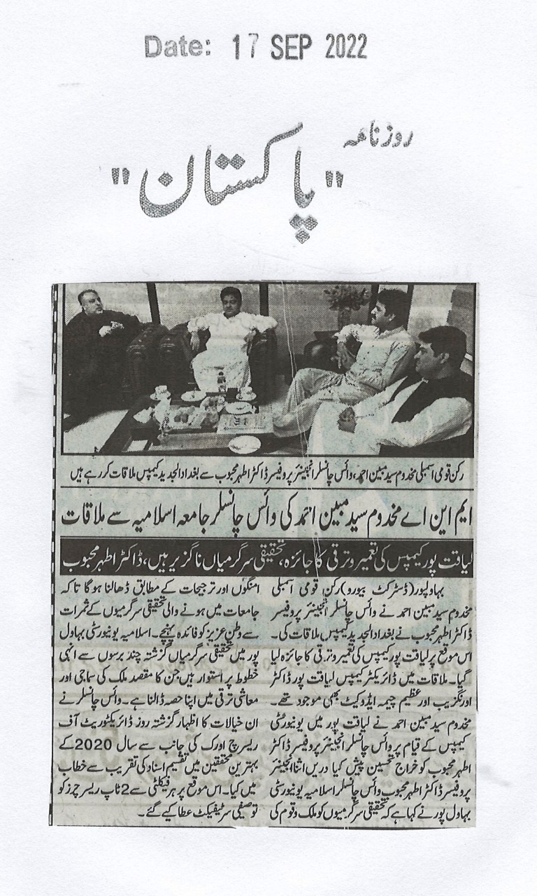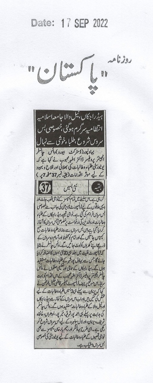 The Islamia University of Bahawalpur was established in the year 1975 by upgrading historical institute of the Jamia Abbasia.