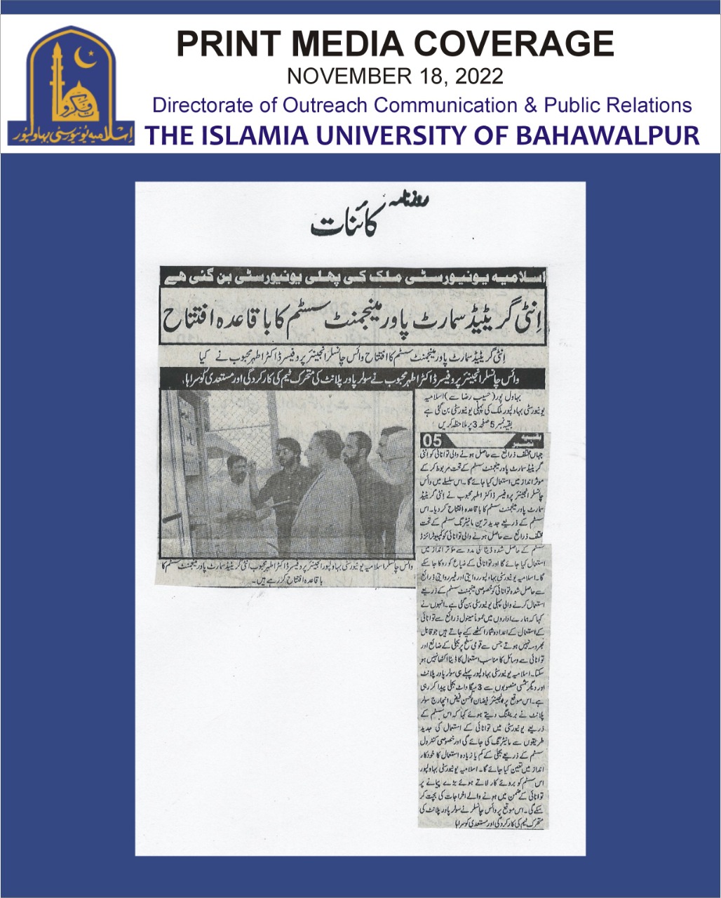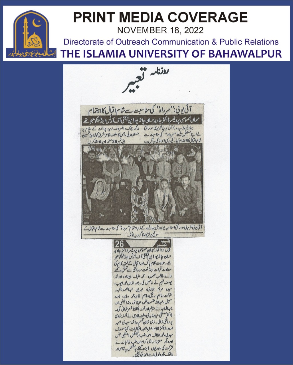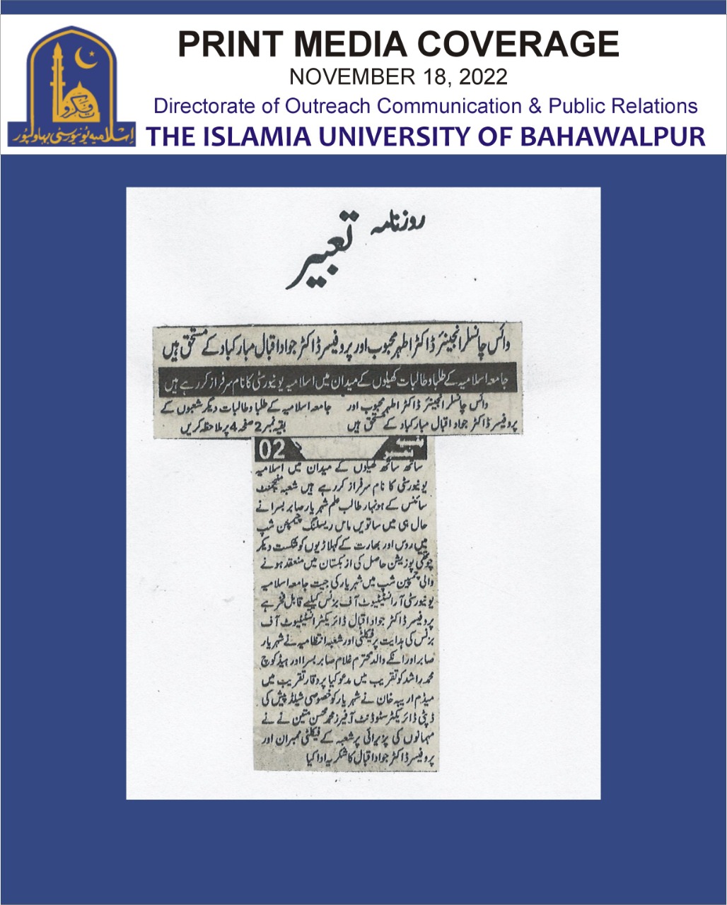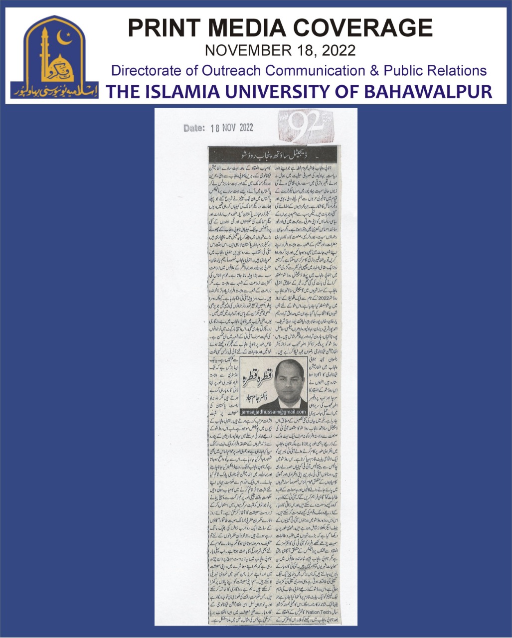 The Islamia University of Bahawalpur was established in the year 1975 by upgrading historical institute of the Jamia Abbasia.