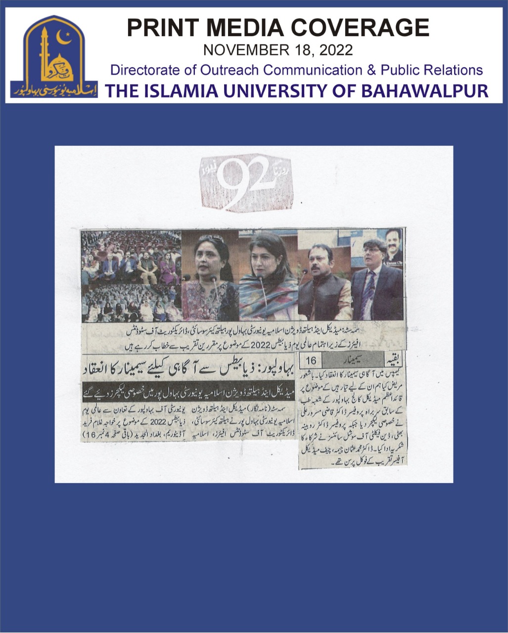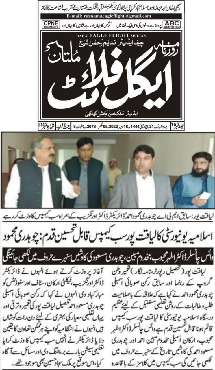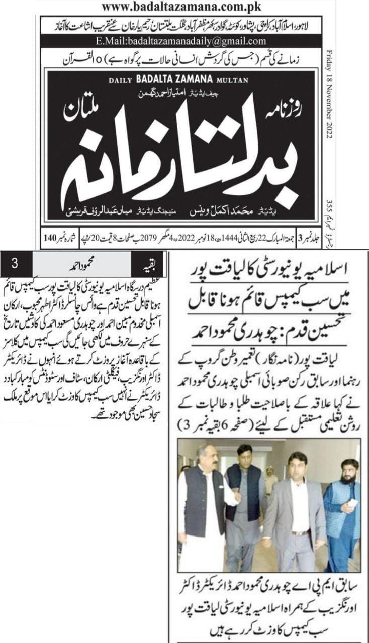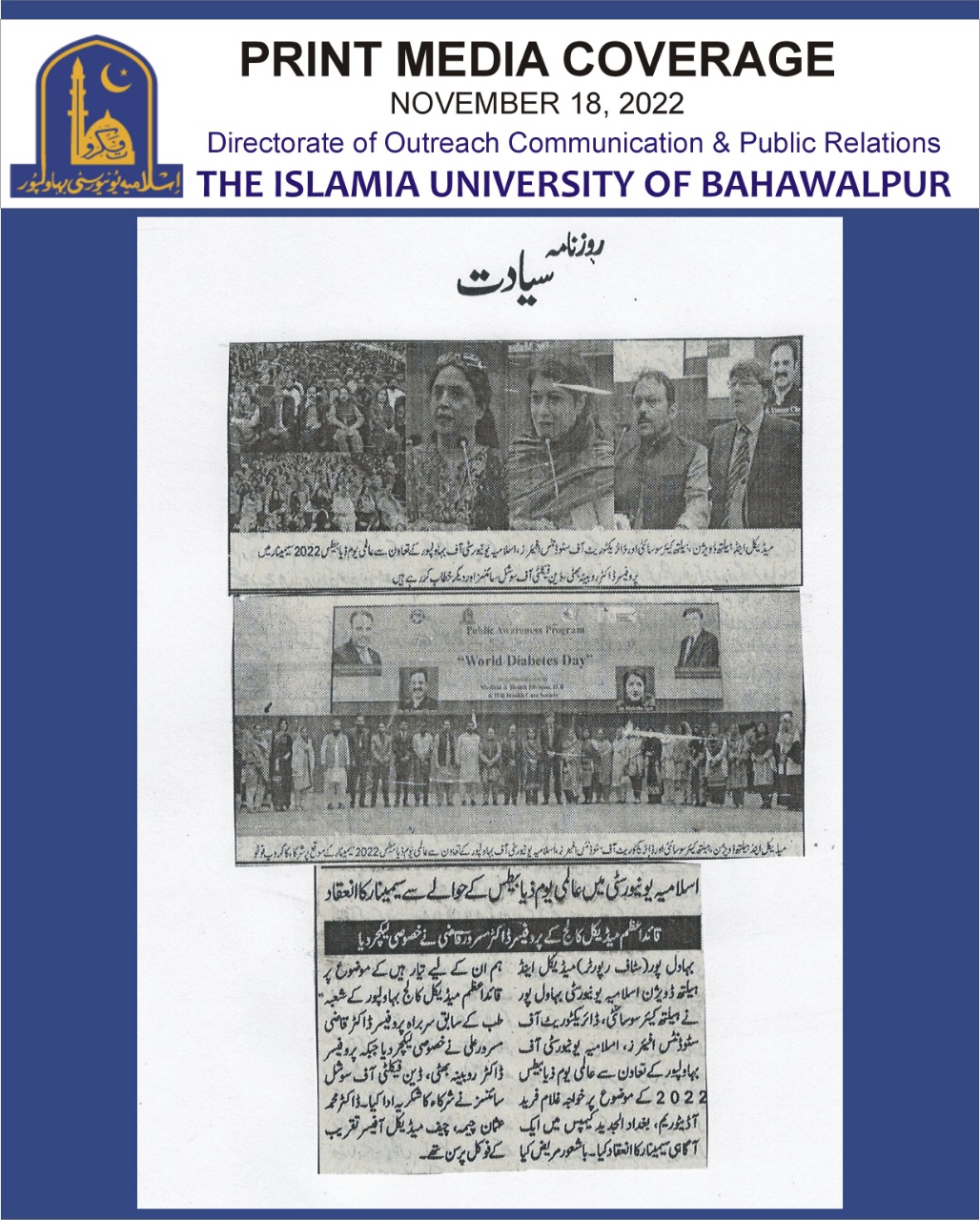 The Islamia University of Bahawalpur was established in the year 1975 by upgrading historical institute of the Jamia Abbasia.