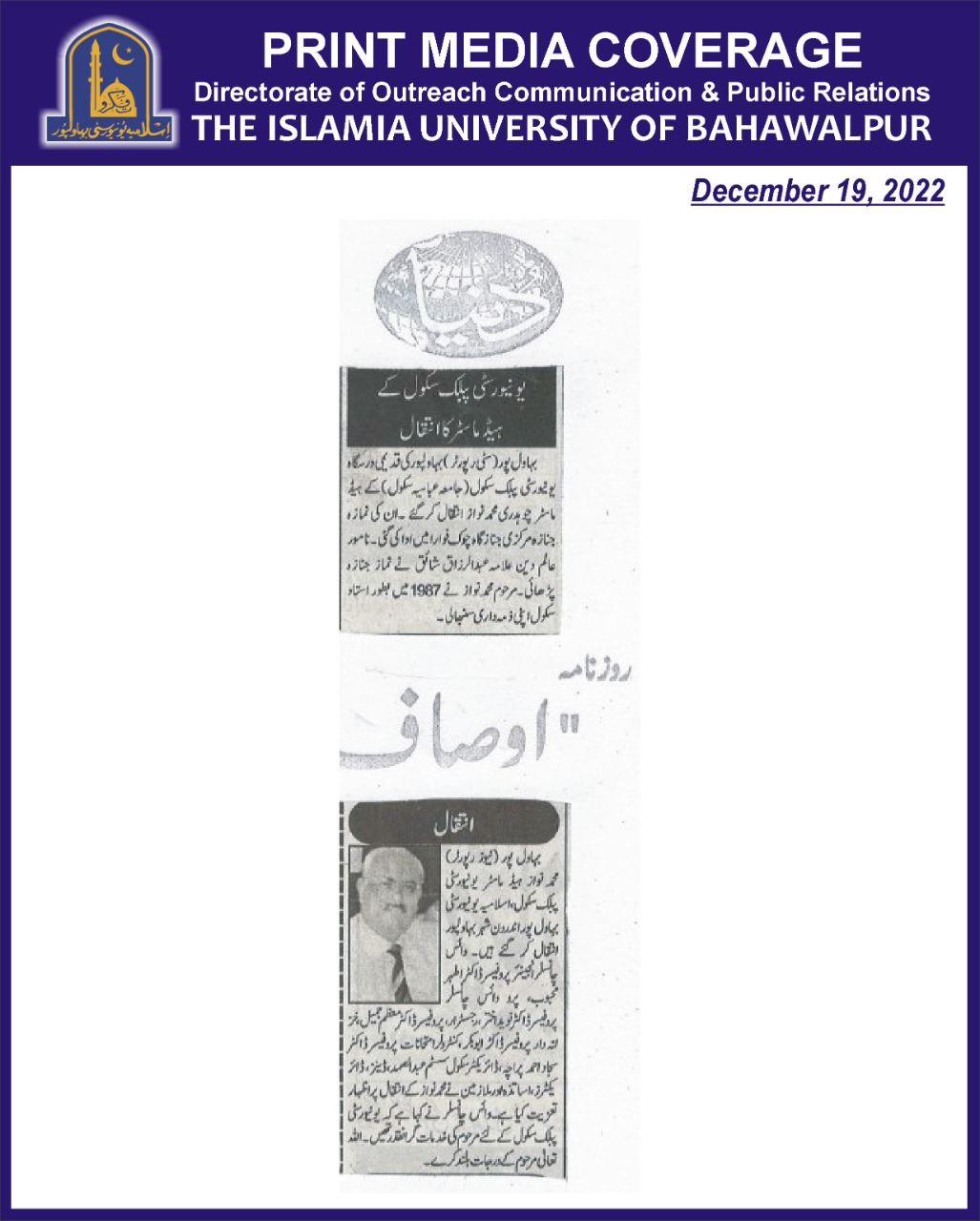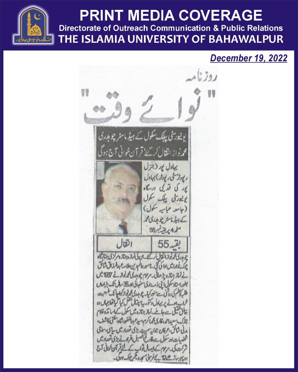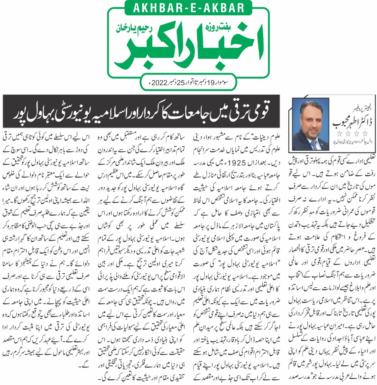 The Islamia University of Bahawalpur was established in the year 1975 by upgrading historical institute of the Jamia Abbasia.
