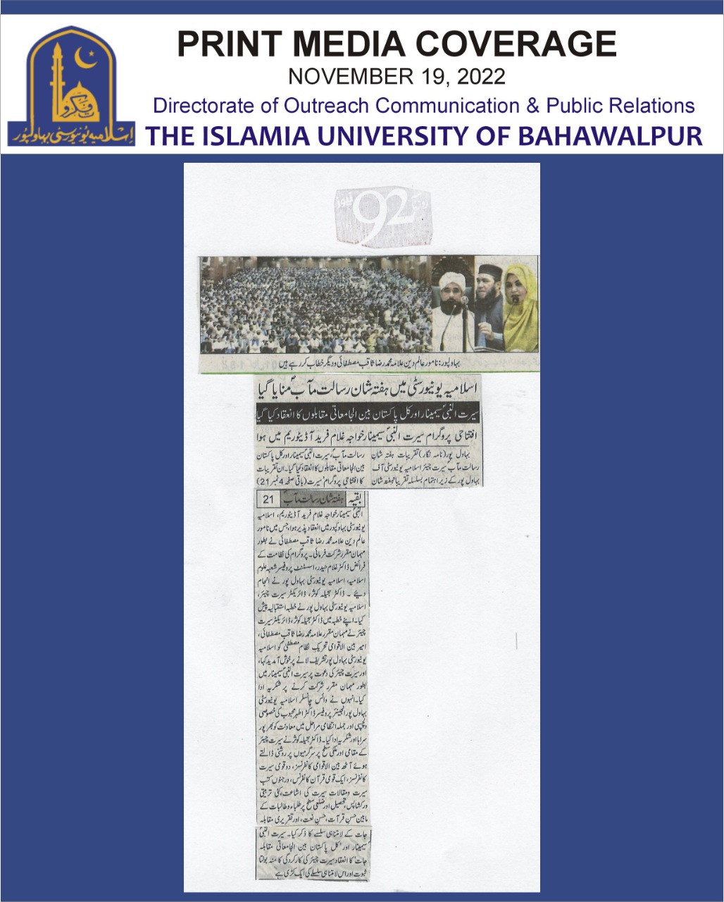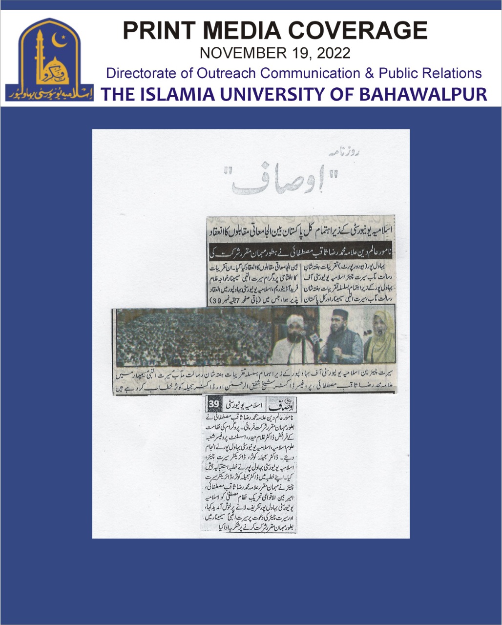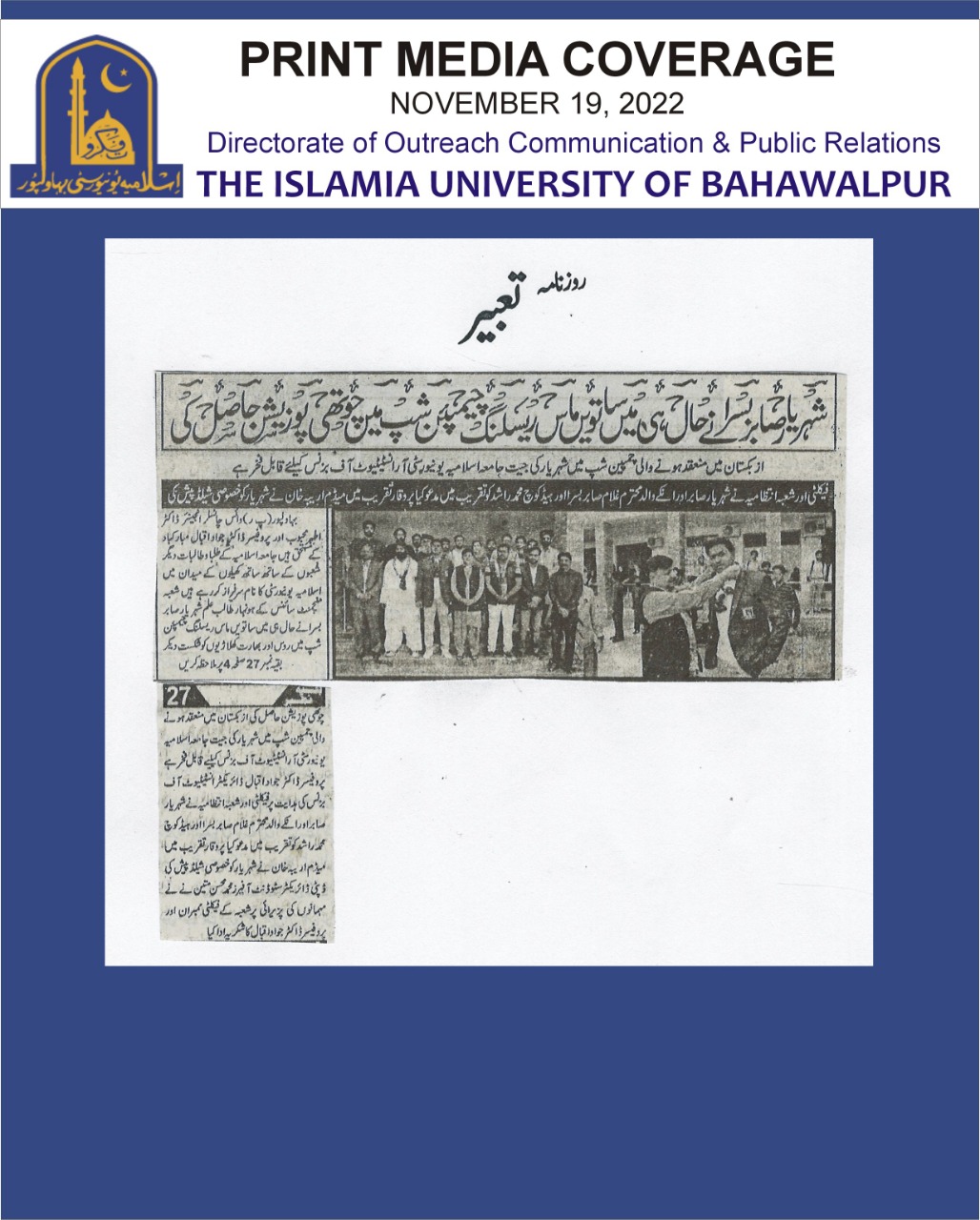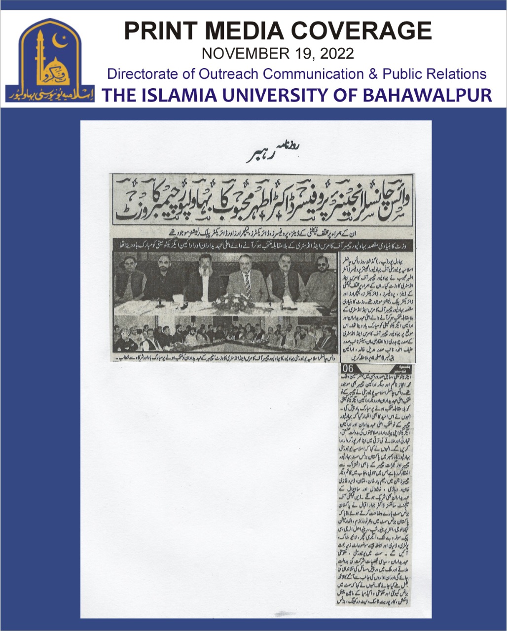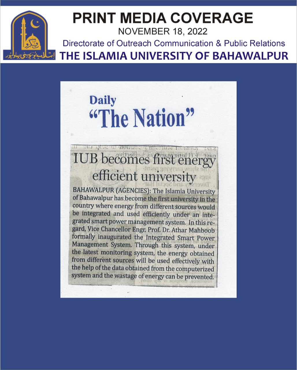 The Islamia University of Bahawalpur was established in the year 1975 by upgrading historical institute of the Jamia Abbasia.