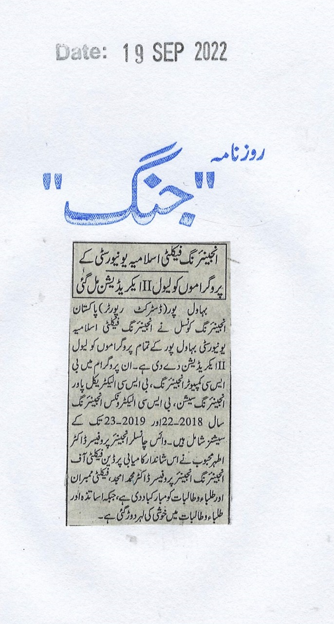 The Islamia University of Bahawalpur was established in the year 1975 by upgrading historical institute of the Jamia Abbasia.