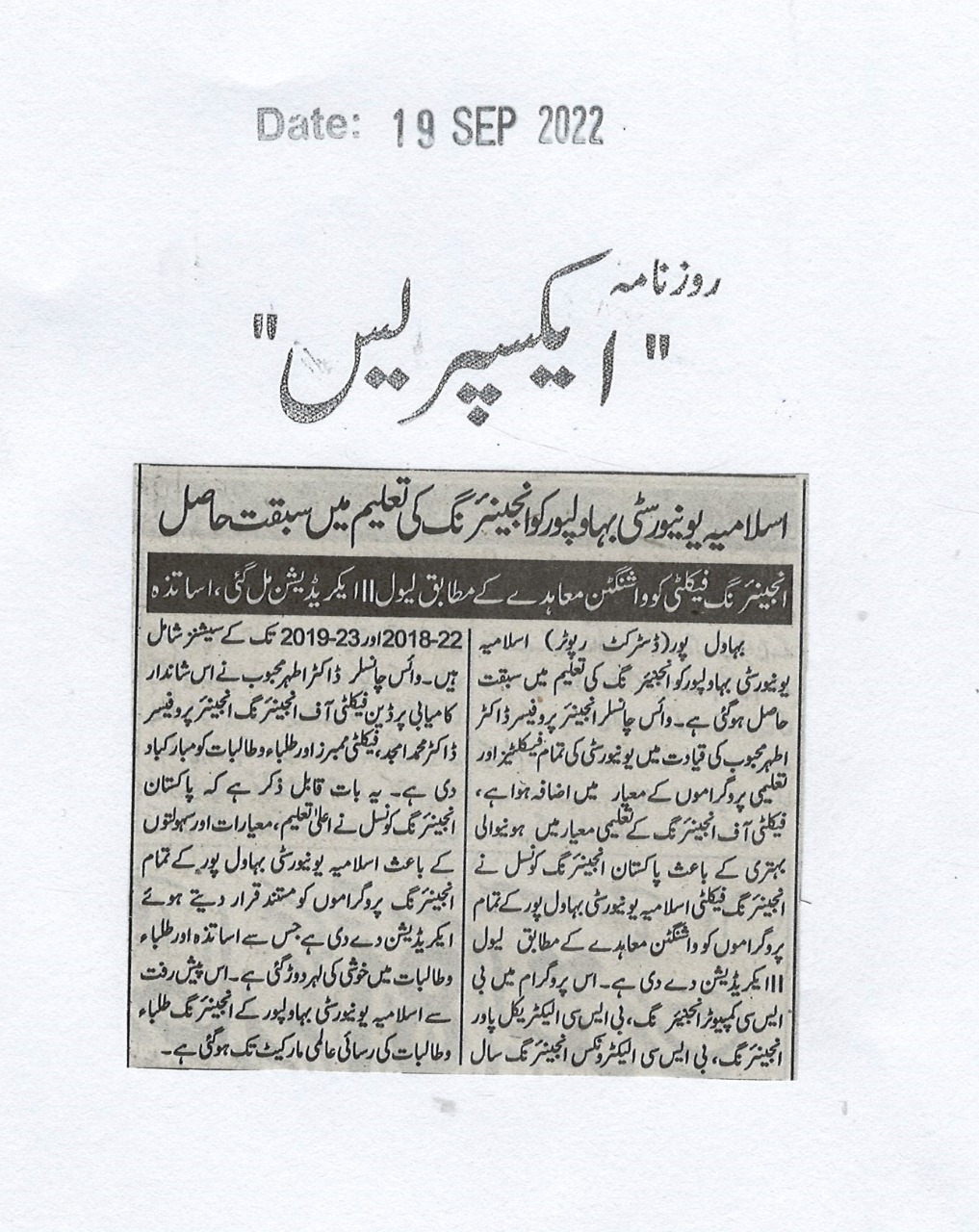 News Cutting 19 September 2022