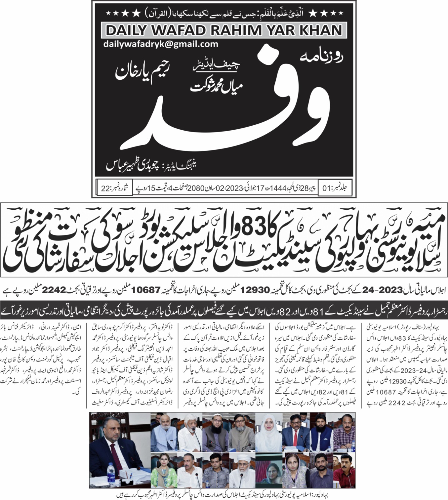 The Islamia University of Bahawalpur was established in the year 1975 by upgrading historical institute of the Jamia Abbasia.