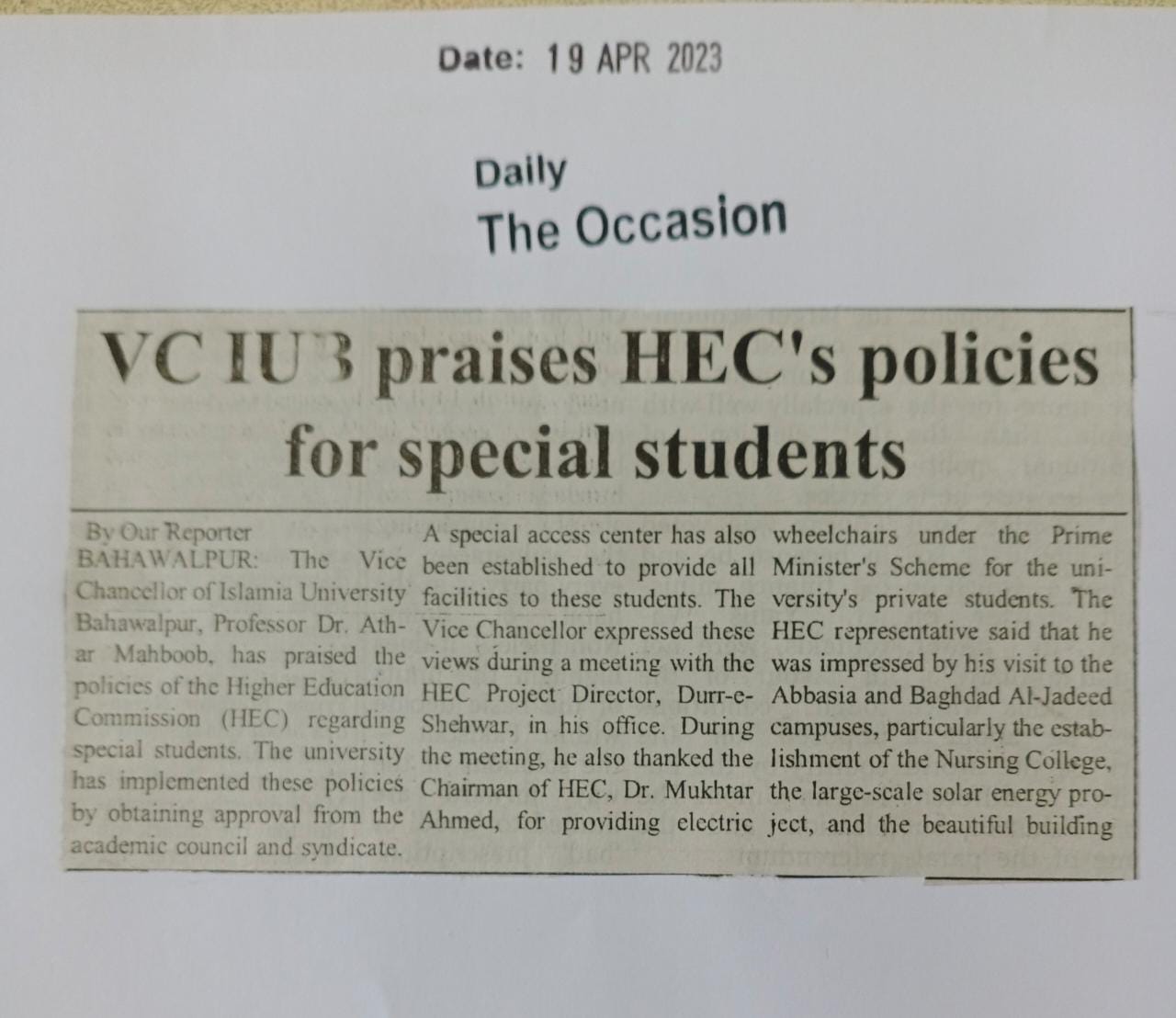 News Cutting 20 April 2023