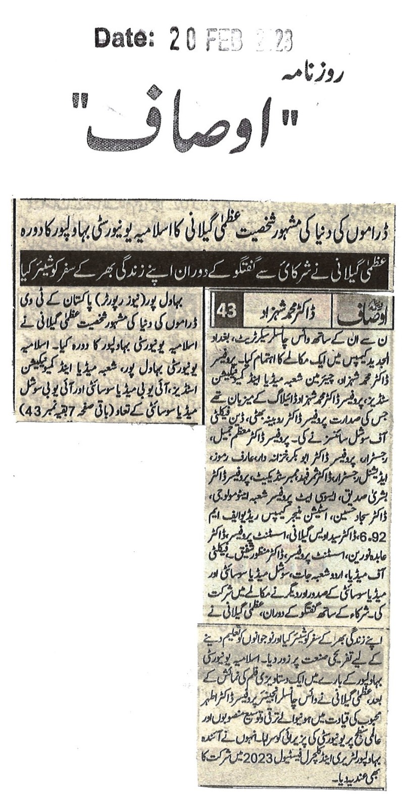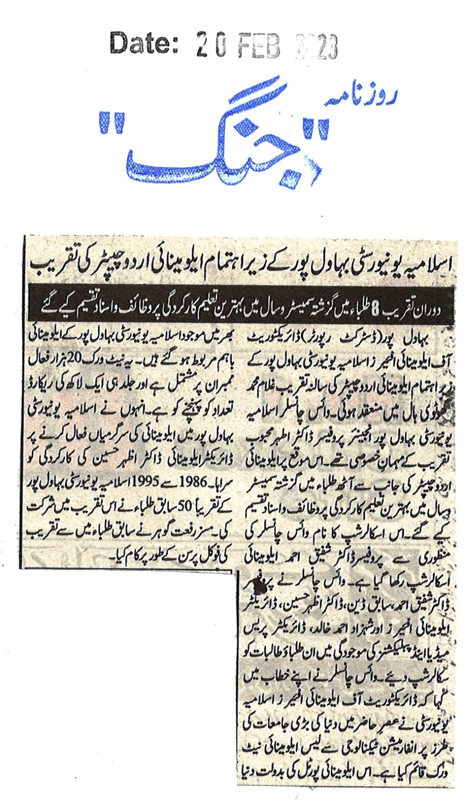 News Cutting 20 February 2023