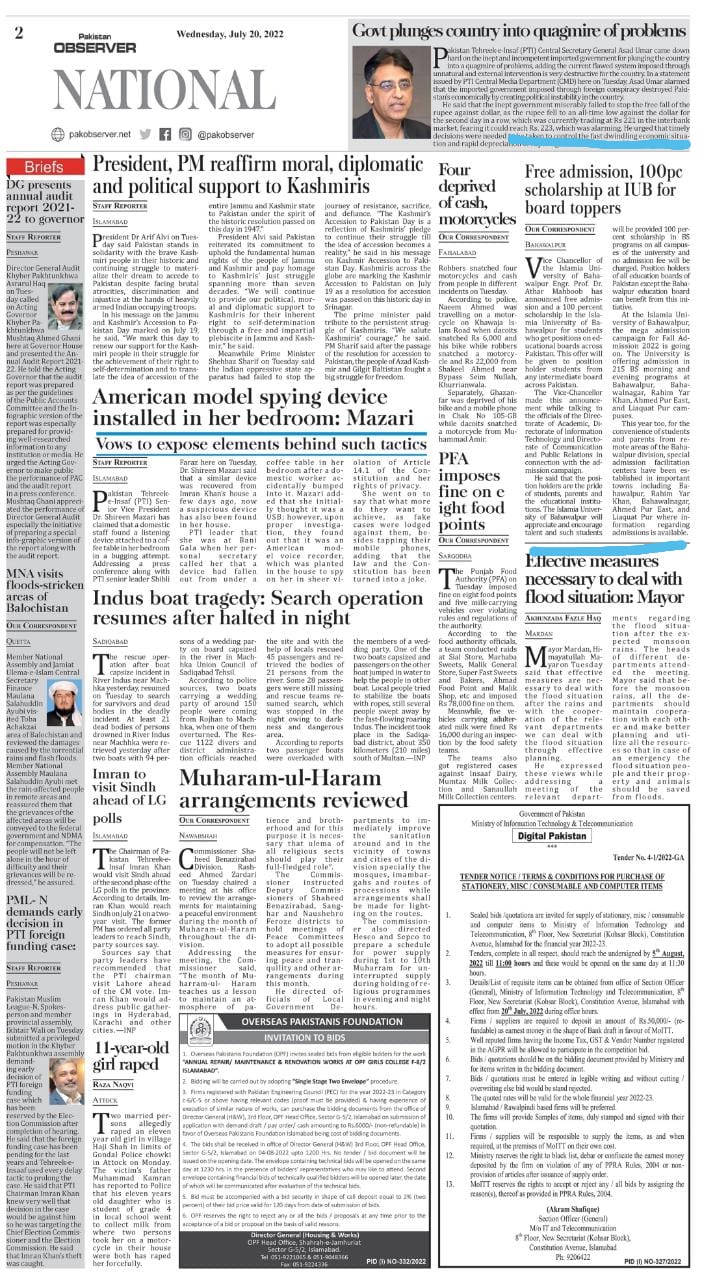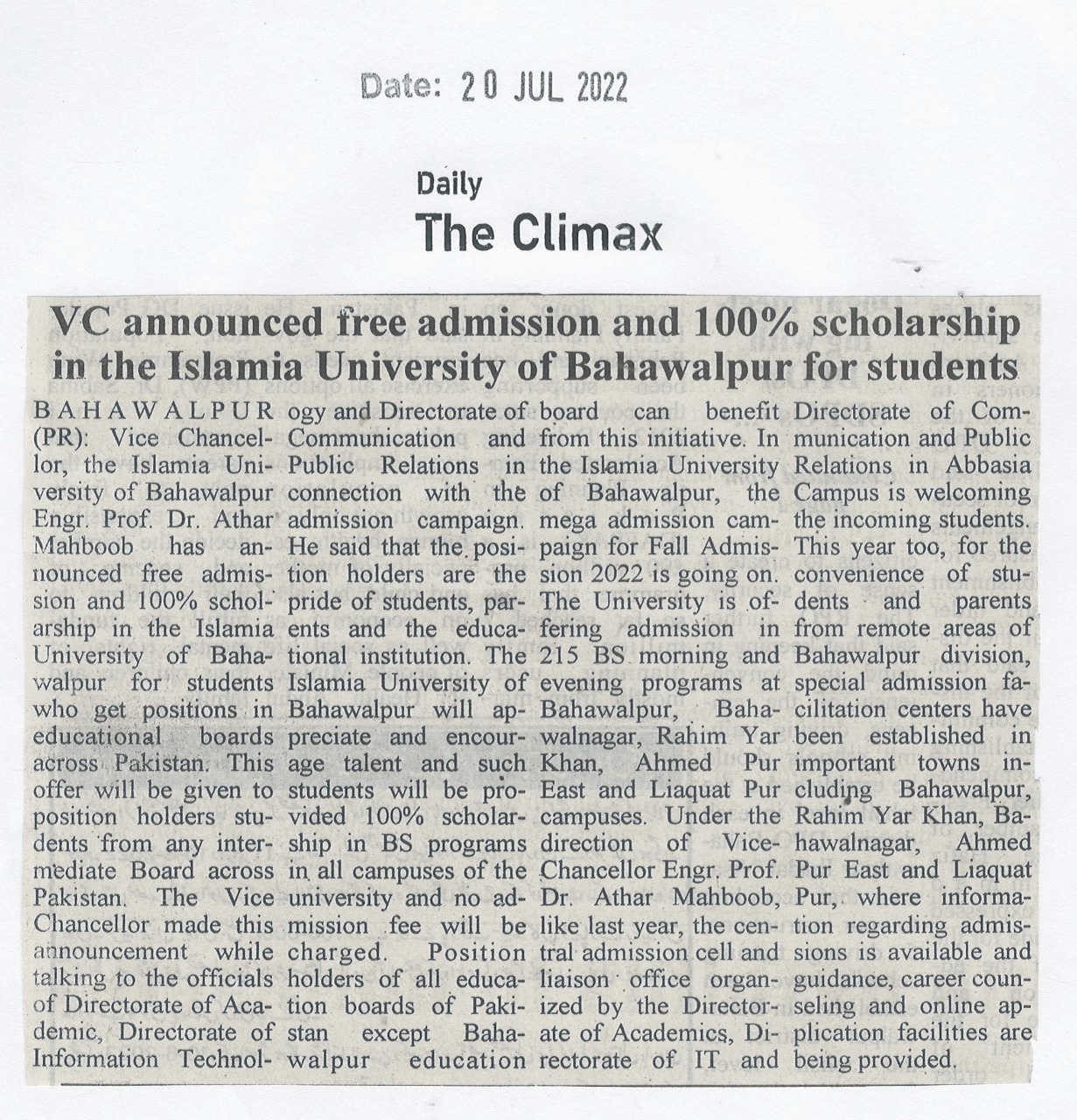 News cutting 20 July 2022