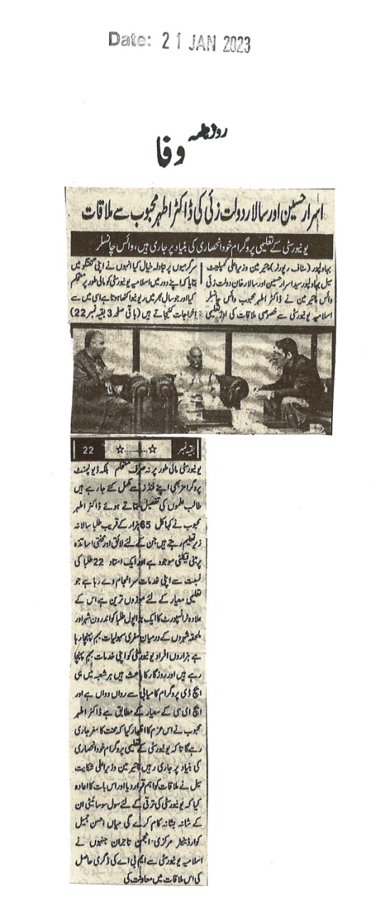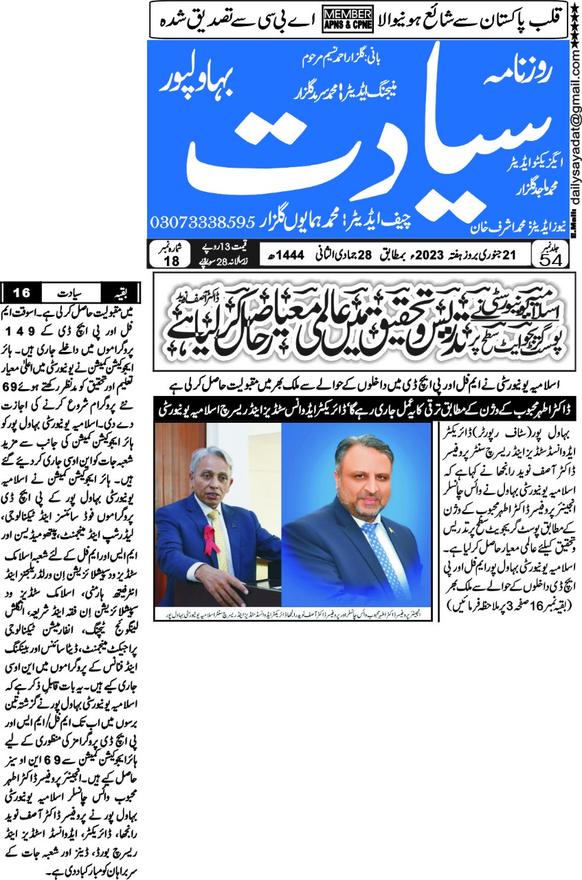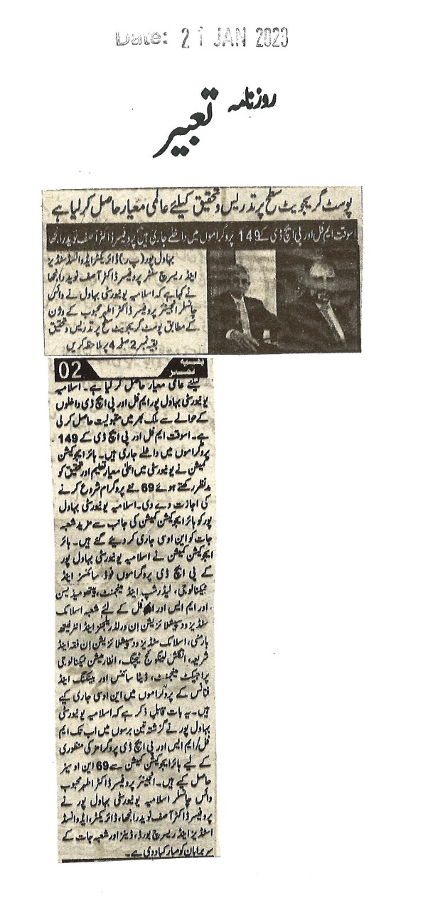 The Islamia University of Bahawalpur was established in the year 1975 by upgrading historical institute of the Jamia Abbasia.