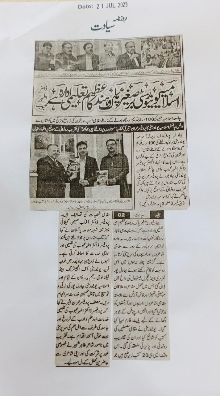 The Islamia University of Bahawalpur was established in the year 1975 by upgrading historical institute of the Jamia Abbasia.