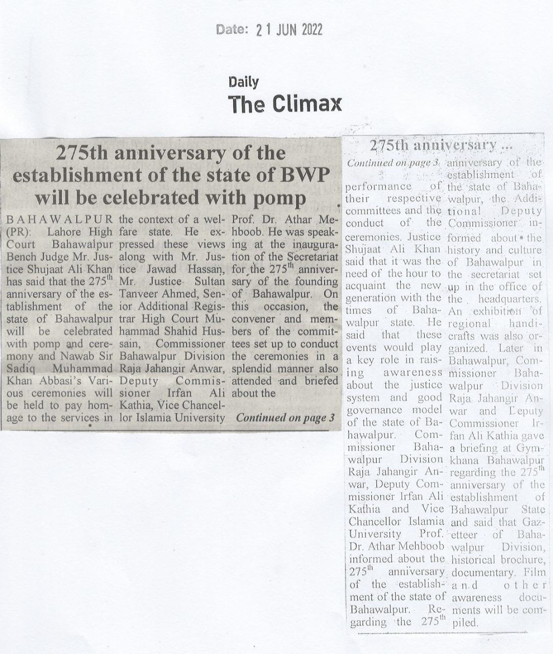 The Islamia University of Bahawalpur was established in the year 1975 by upgrading historical institute of the Jamia Abbasia.