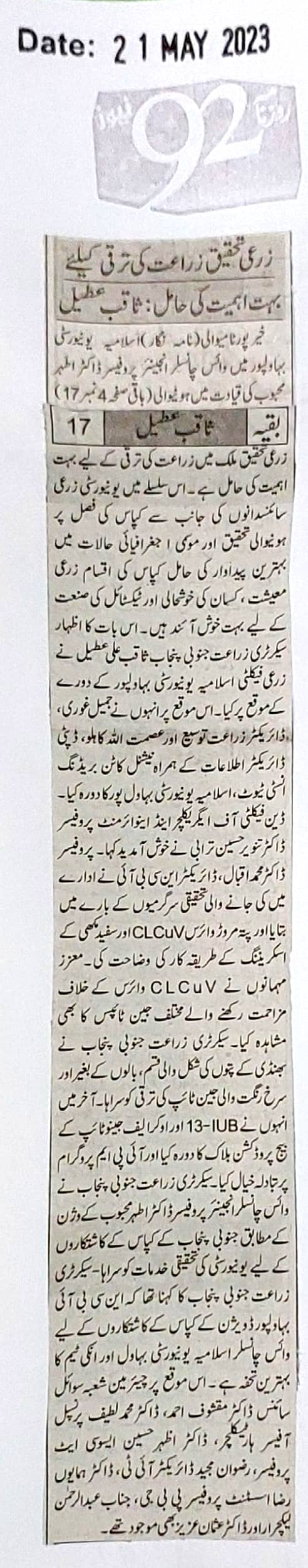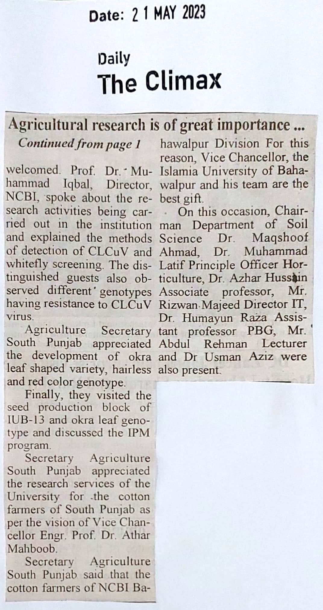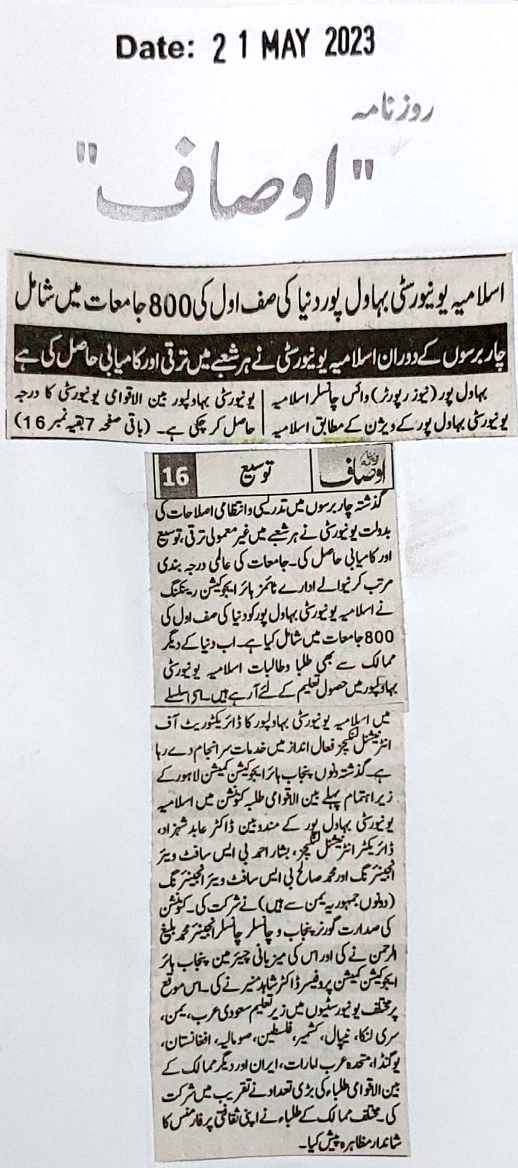 News Cutting 21 May 2023