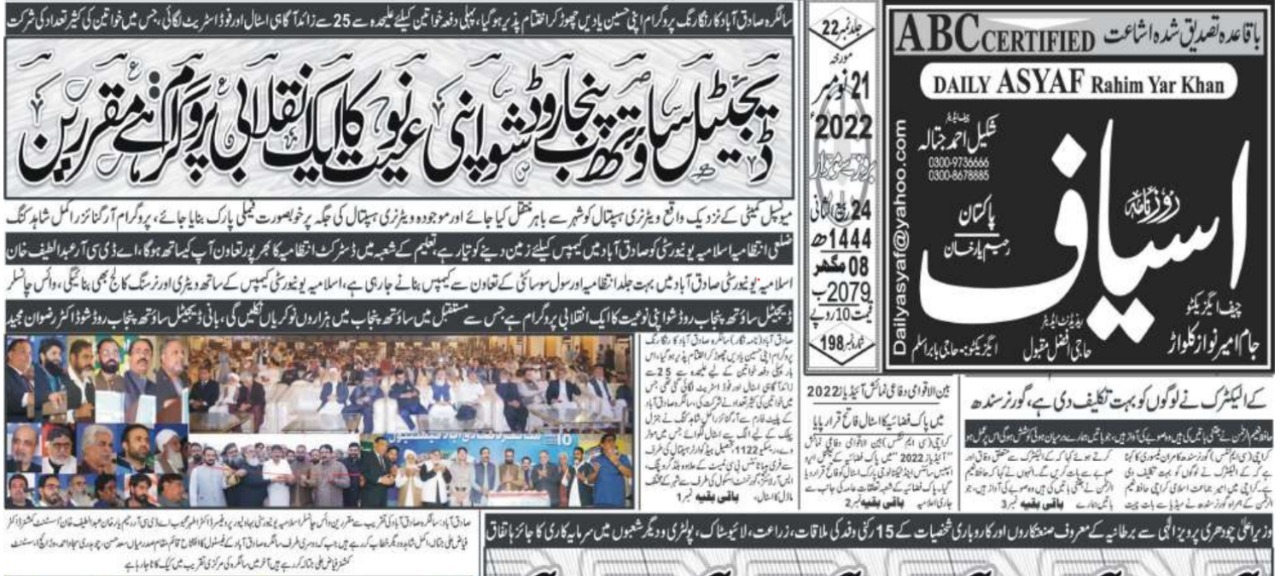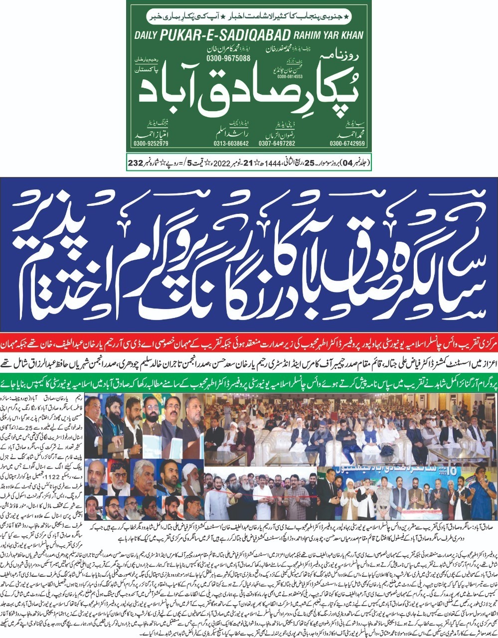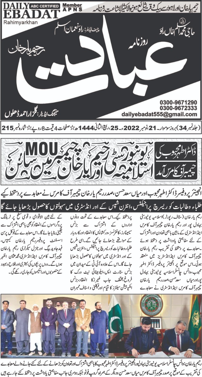 The Islamia University of Bahawalpur was established in the year 1975 by upgrading historical institute of the Jamia Abbasia.