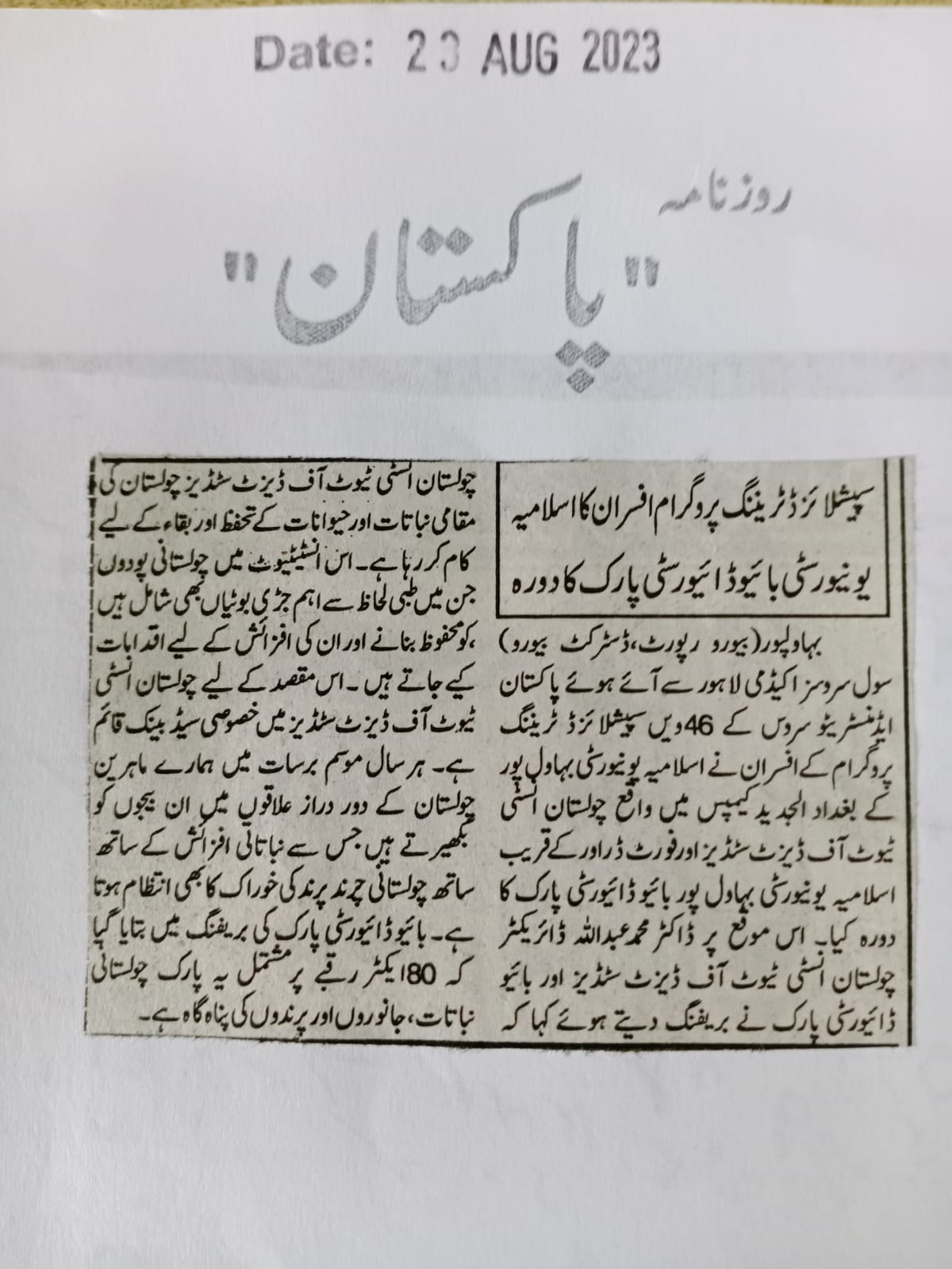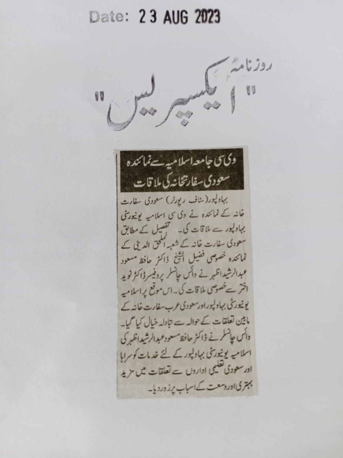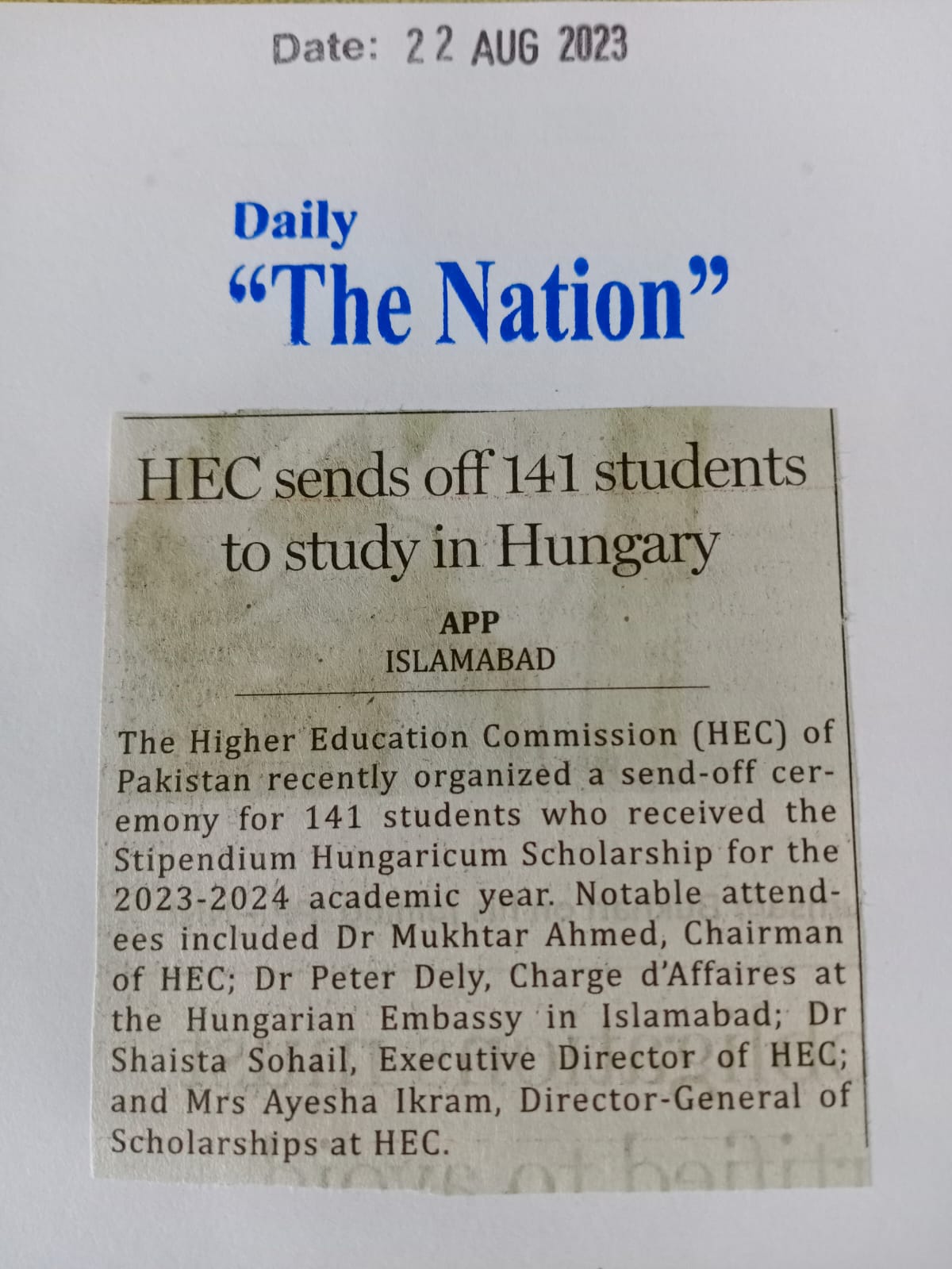News Cutting 23 August 2023