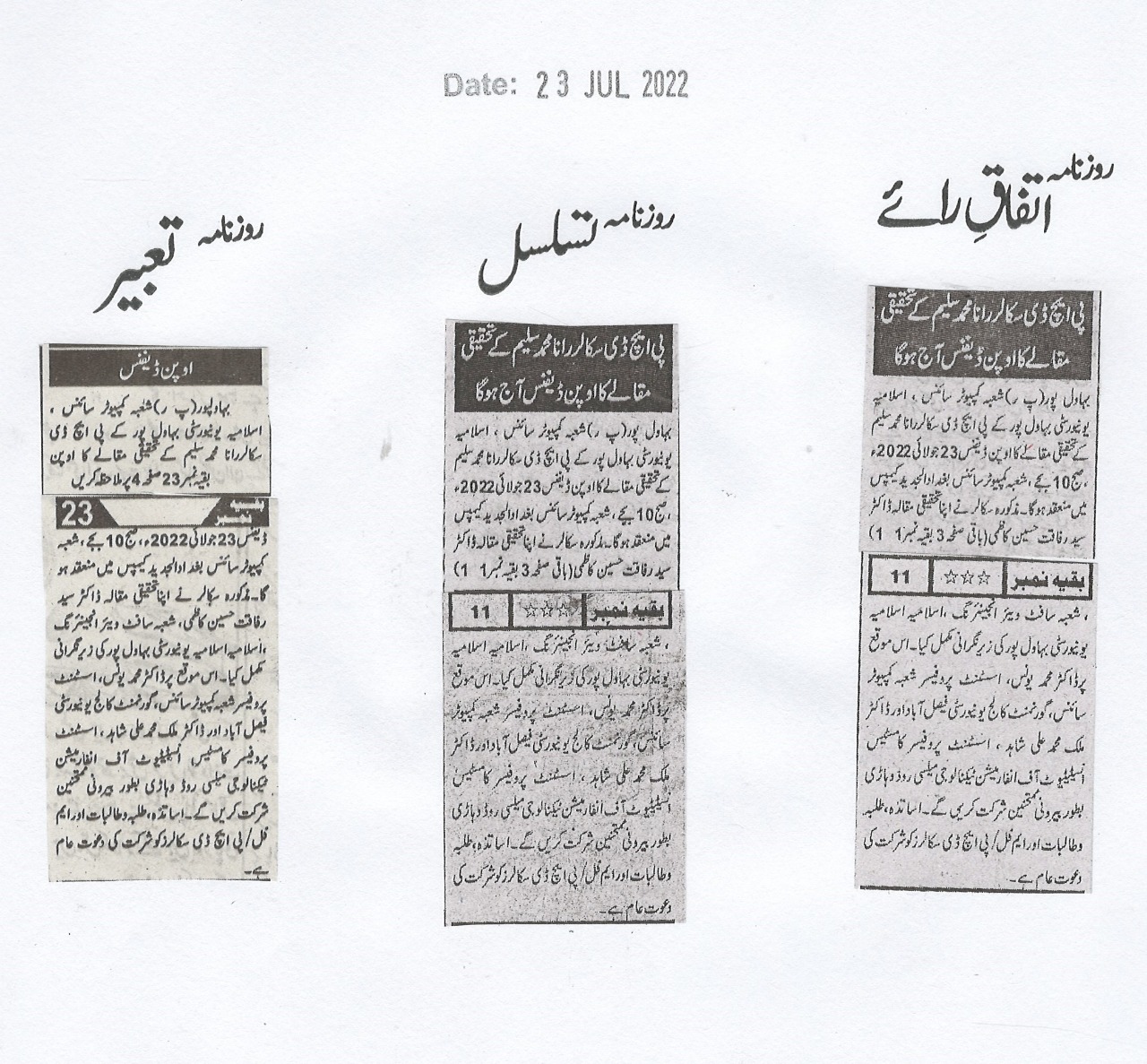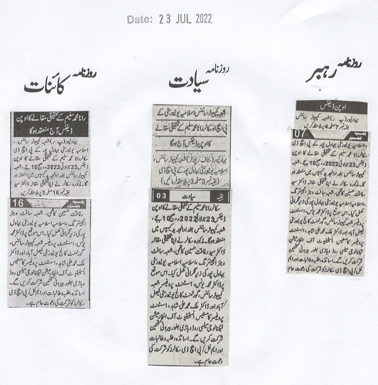 News Cutting 23 July 2022